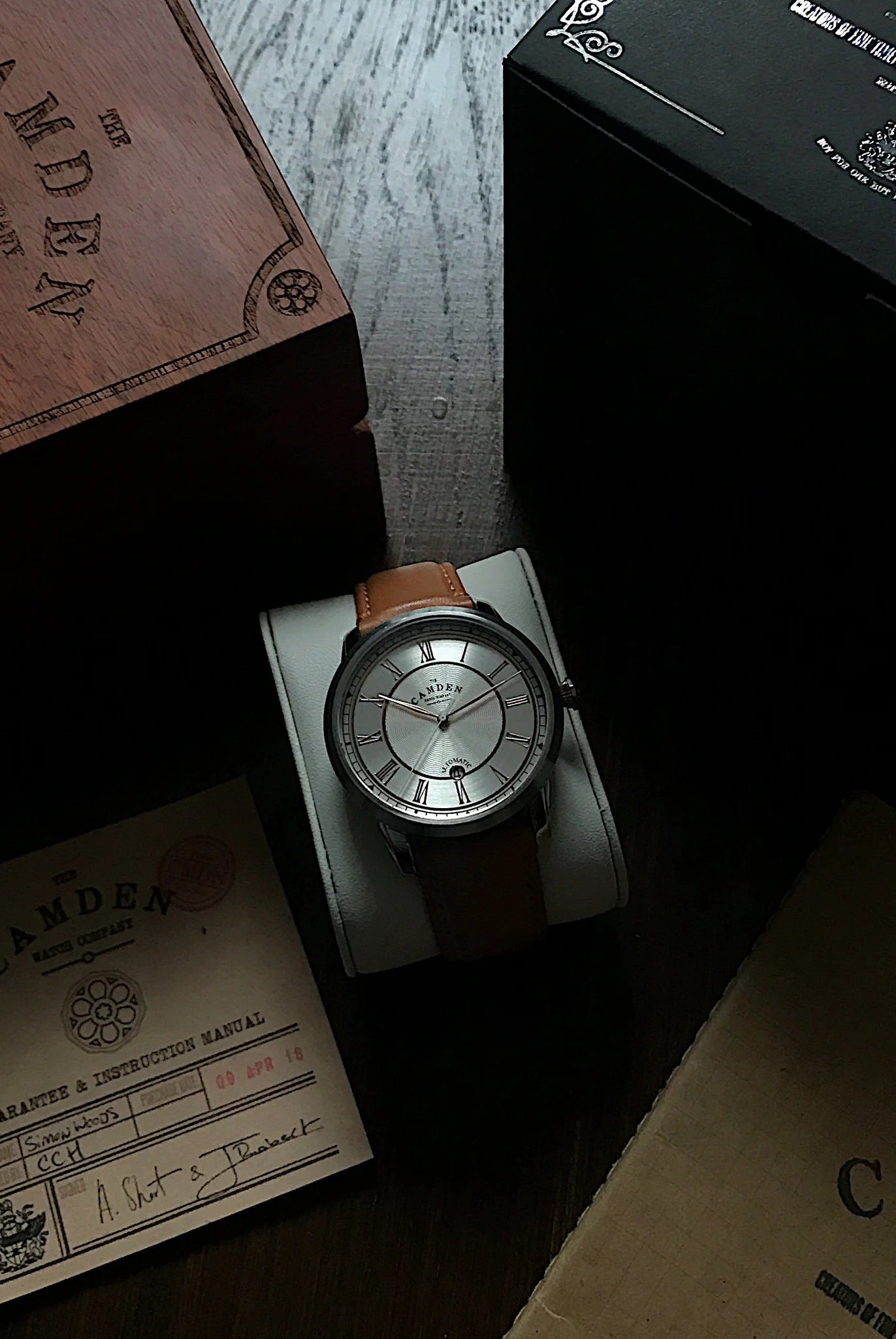 Camden Automatic Watches are powered by high-quality automatic movements, ensuring accurate timekeeping and a self-winding mechanism that operates with the motion of your wrist. The use of premium materials, including scratch-resistant crystals and water-resistant cases, guarantees durability and longevity. With unique design elements, from vibrant dial colours to elegant detailing, these watches reflect Camden's artistic heritage and commitment to excellence. Embrace the fusion of tradition and innovation with Camden Automatic Watches, an ideal choice for individuals who value timeless style and mechanical sophistication.