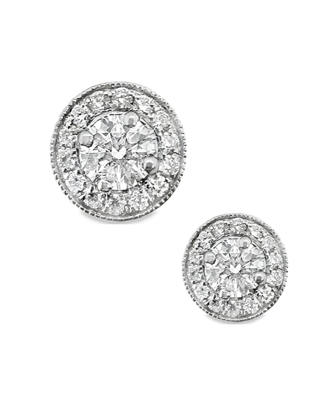 Add timeless elegance to your jewellery collection with these stunning 18ct white gold halo diamond stud earrings. Featuring a central diamond of 0.25ct in each stud, these exquisite earrings are surrounded by a delicate halo of brilliant-cut diamonds, enhancing their size and sparkle.