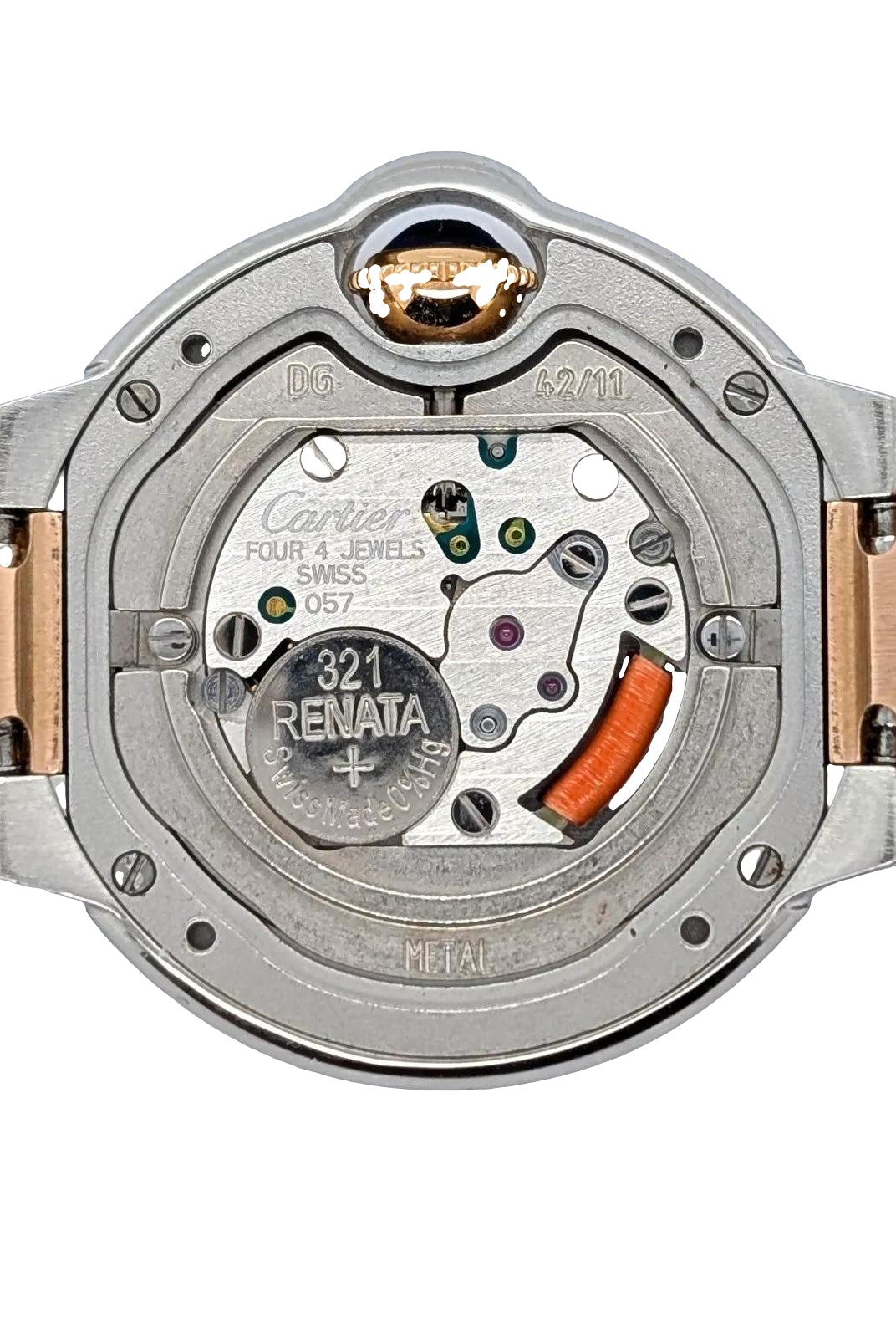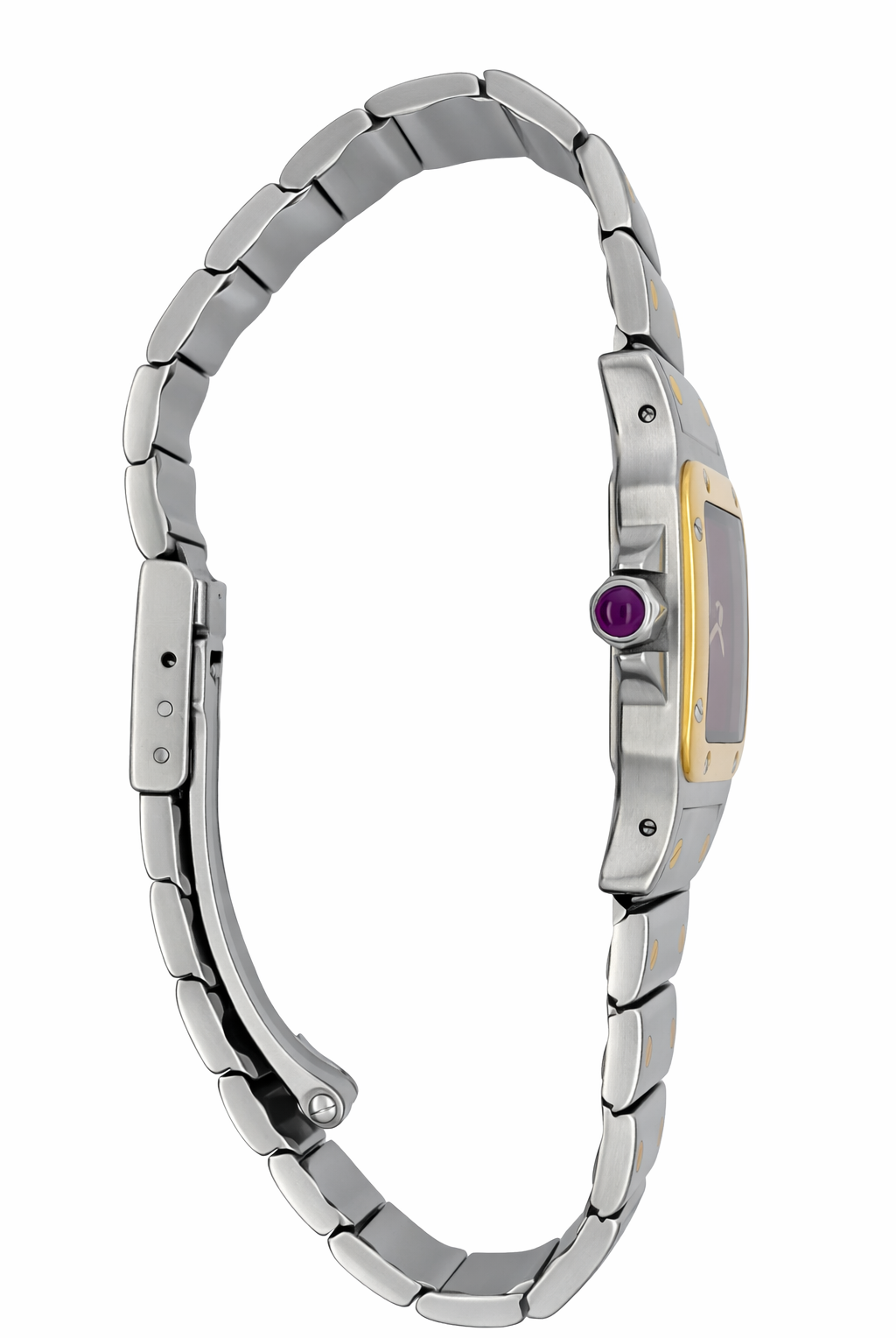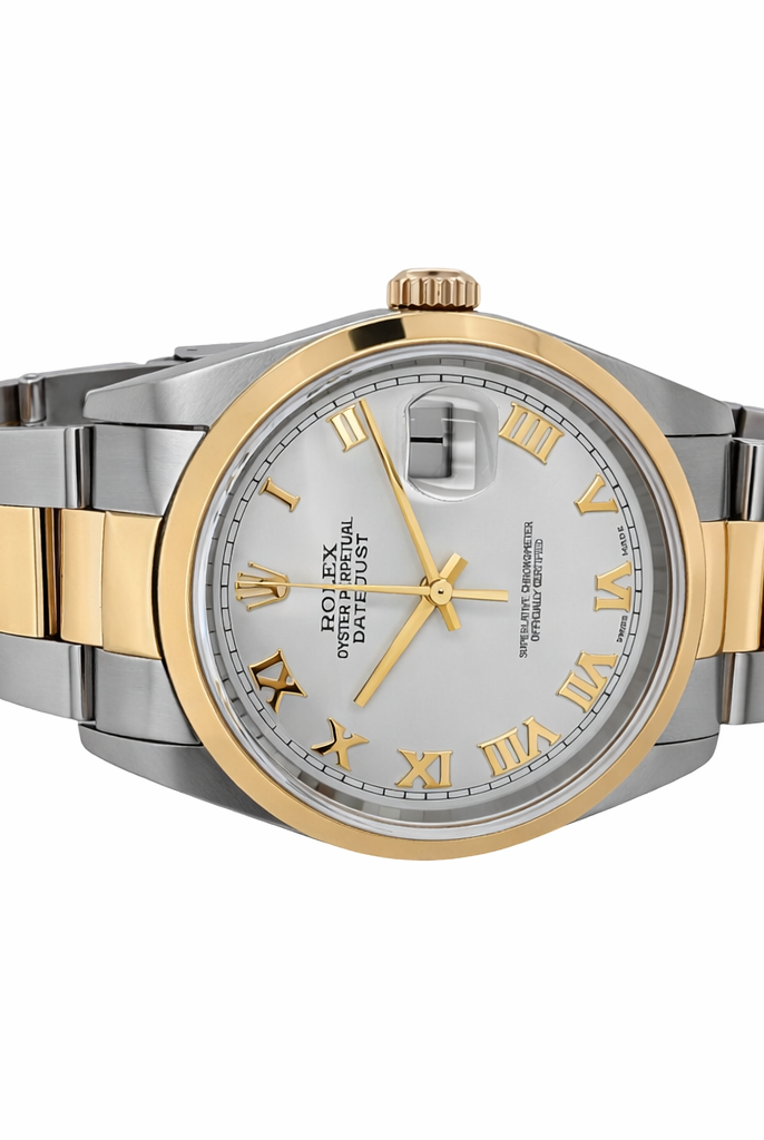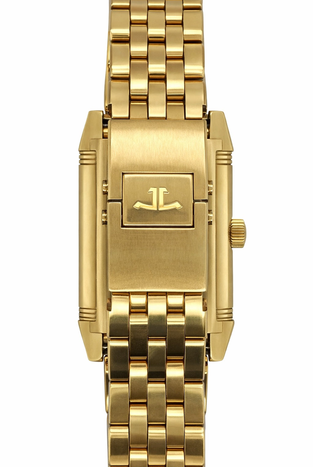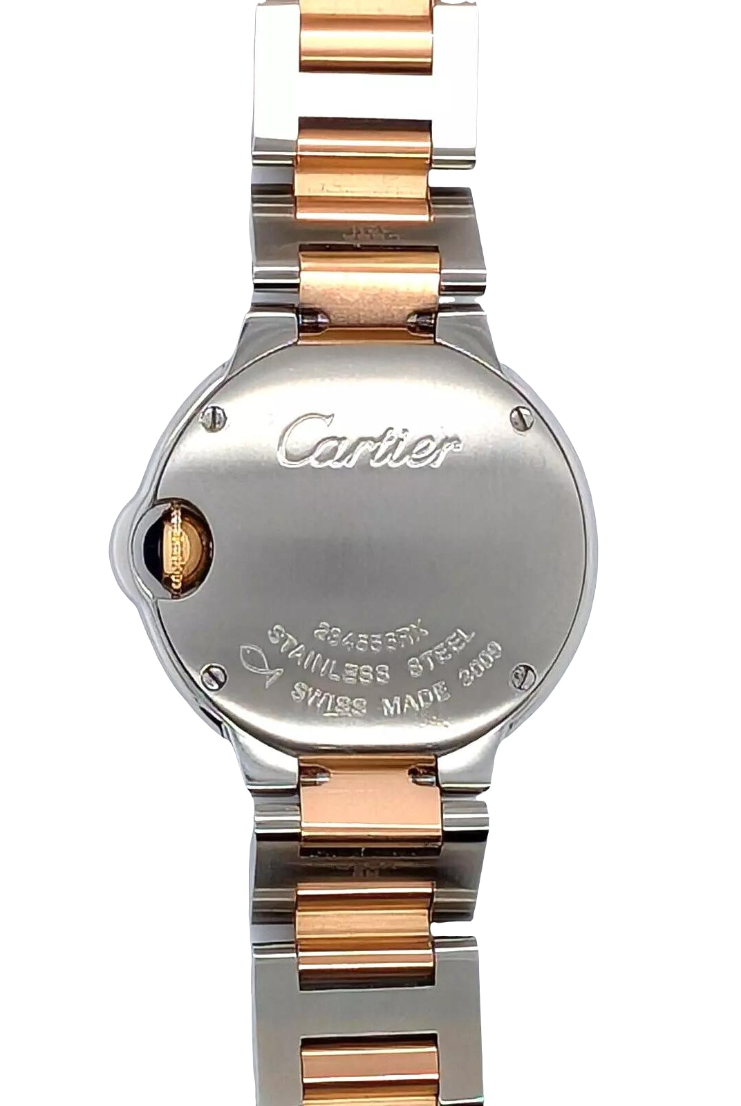 Crafted entirely from 18ct yellow gold, the watch features a crisp white dial with Cartier’s signature Roman numerals, blued steel hands, and a secret “Cartier” signature hidden within the VII numeral — a subtle detail authenticating its luxury pedigree. The solid gold linked bracelet is fluid and comfortable, designed to contour perfectly to the wrist while offering unmistakable presence.