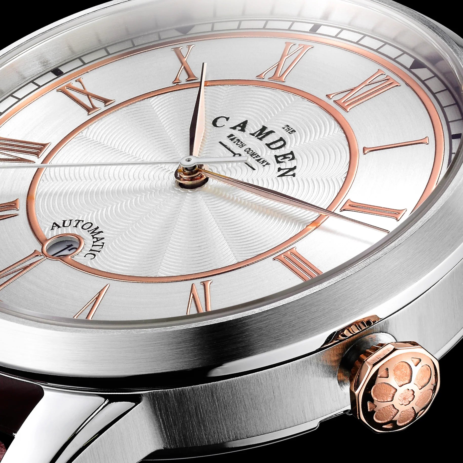 Camden Automatic Watches are powered by high-quality automatic movements, ensuring accurate timekeeping and a self-winding mechanism that operates with the motion of your wrist. The use of premium materials, including scratch-resistant crystals and water-resistant cases, guarantees durability and longevity. With unique design elements, from vibrant dial colours to elegant detailing, these watches reflect Camden's artistic heritage and commitment to excellence. Embrace the fusion of tradition and innovation with Camden Automatic Watches, an ideal choice for individuals who value timeless style and mechanical sophistication.