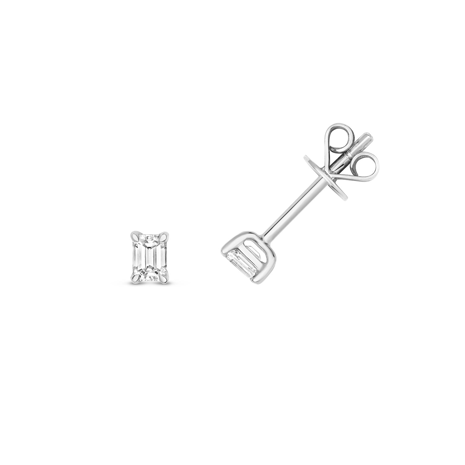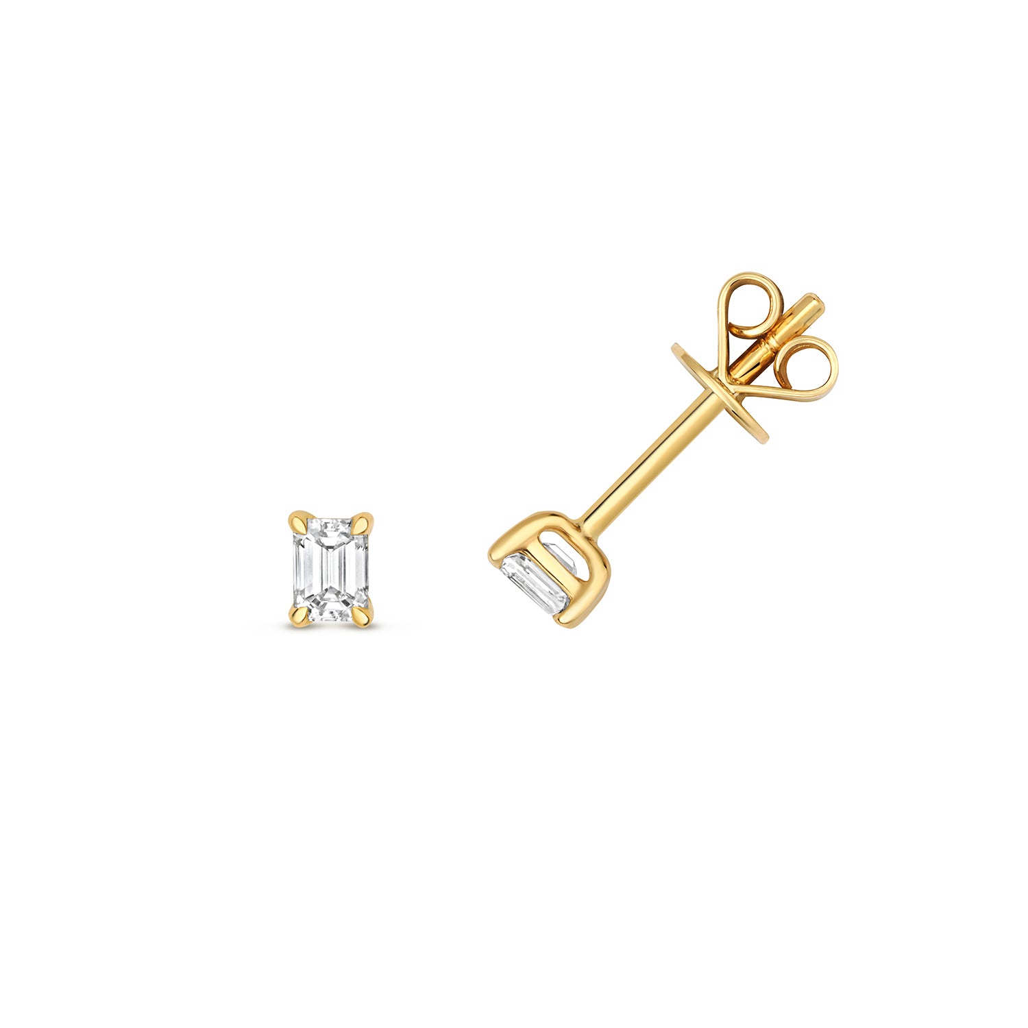 18ct Gold Diamond Emerald Cut Studs (Available in White Gold)