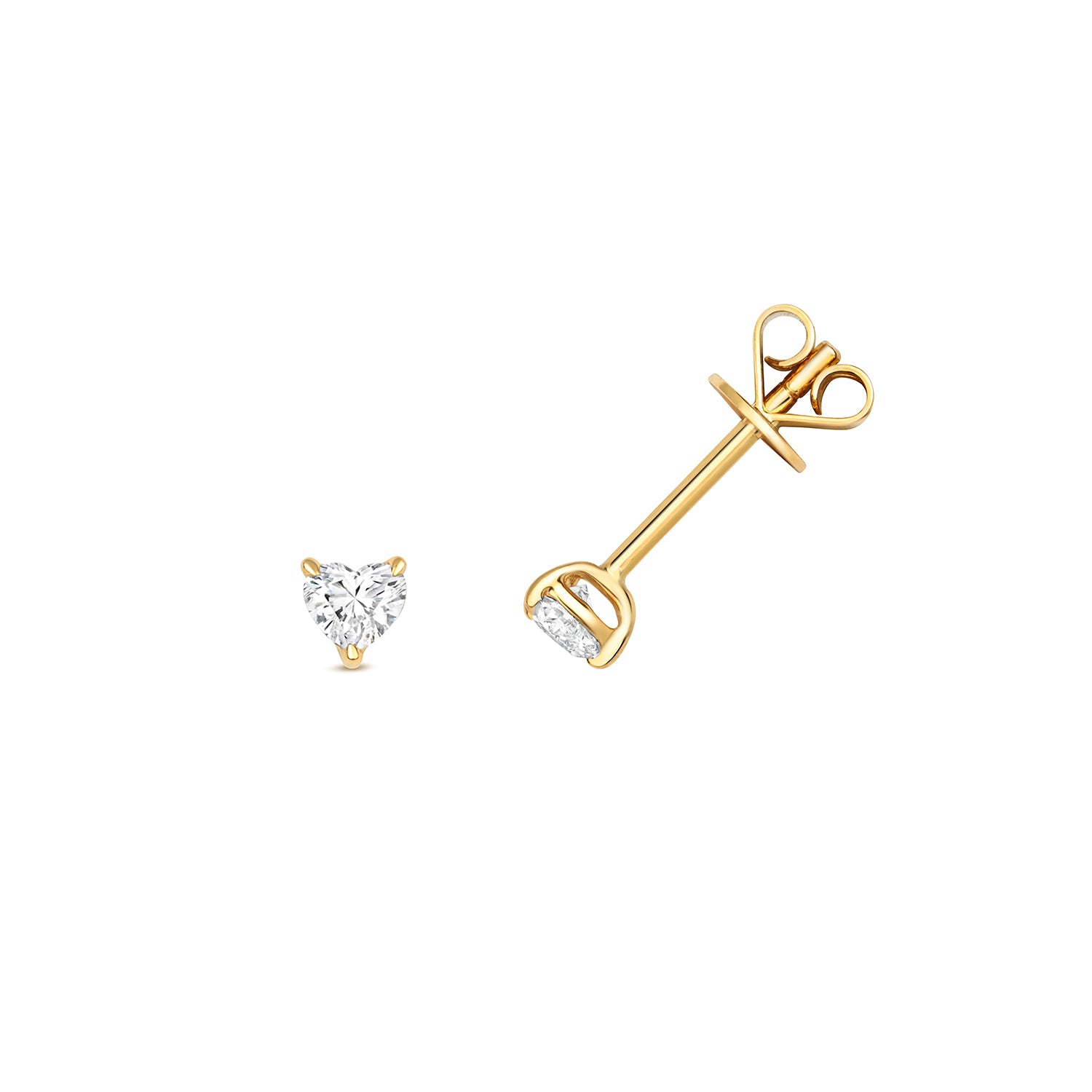 Indulge in the timeless allure of our 18ct Gold Diamond heart-shaped stud earrings. Each earring features a dazzling heart-shaped Diamond, meticulously held in place by a delicate 3-claw prong setting. These stones, boasting a pristine G colour and VS clarity, exhibit exceptional brilliance and fire, captivating with their enchanting sparkle.