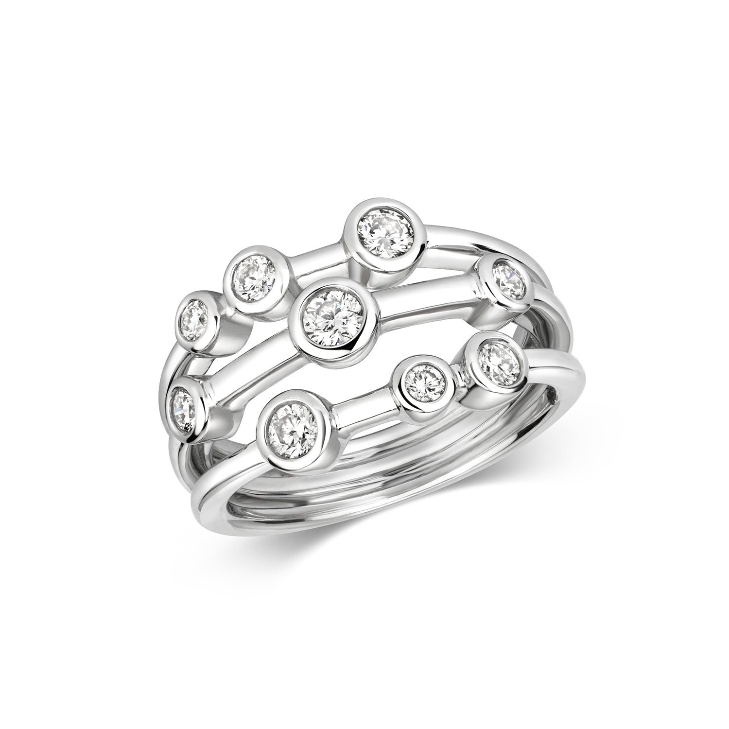 18ct Gold Diamond Three Row Bubble Ring (Available in Yellow Gold)