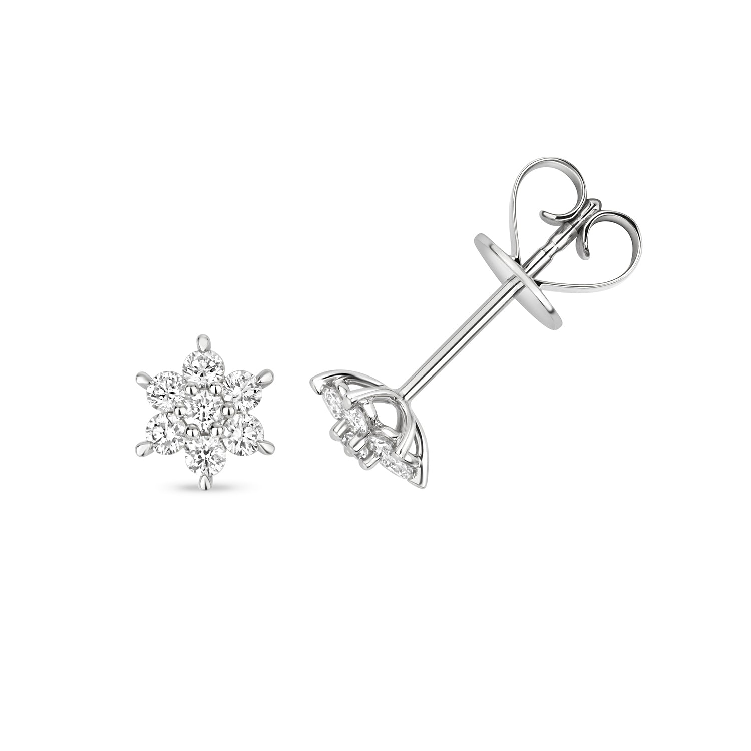 With a total carat weight ranging from 0.29ct to 0.40ct, these earrings offer a perfect balance of sophistication and statement-making allure. Weighing 1.3 grams, they are lightweight and comfortable for everyday wear. The heart-shaped scroll butterfly closure adds a touch of romance and ensures a secure fit. These white Gold cluster studs are a timeless addition to any jewellery collection, perfect for adding a touch of sparkle to any ensemble.