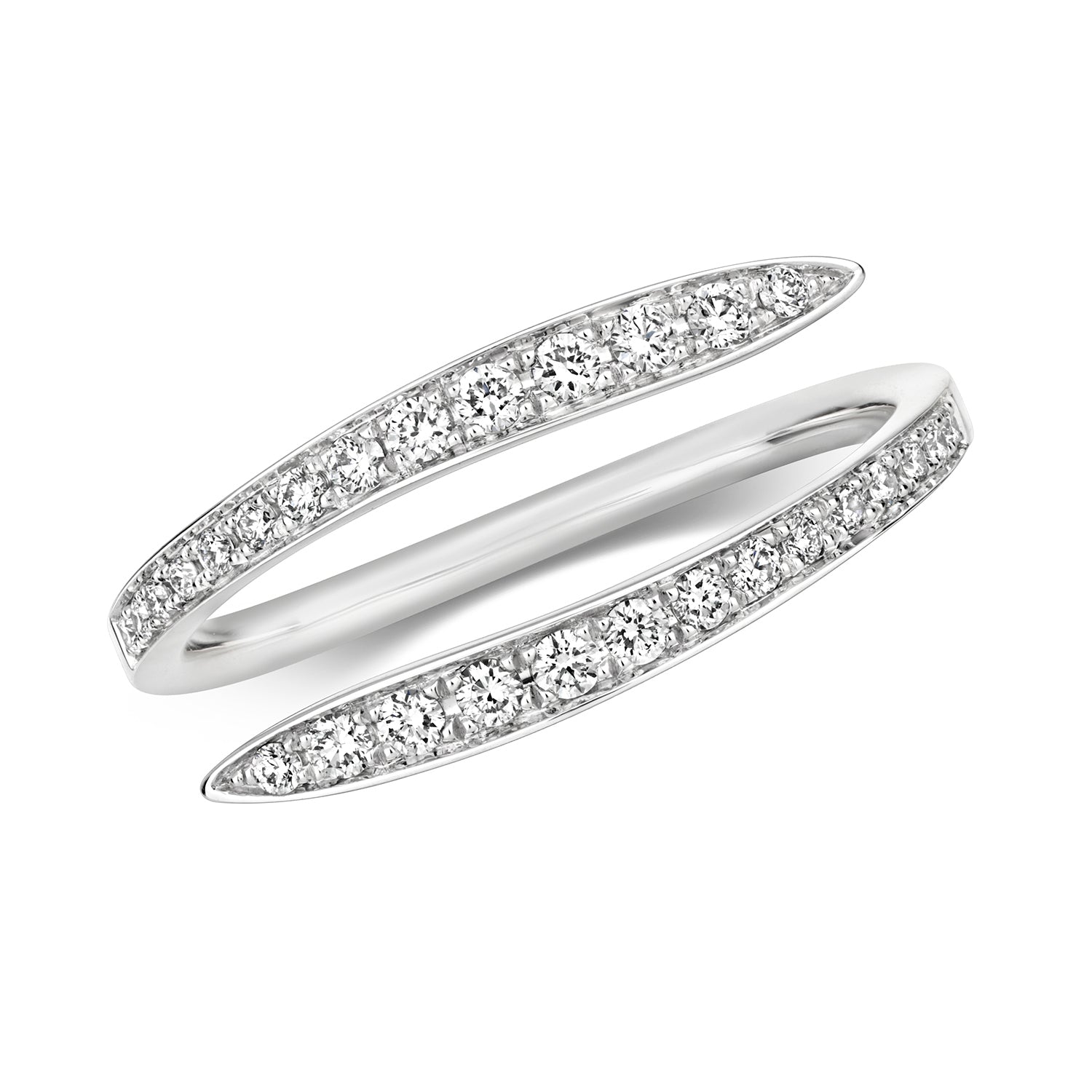 This elegant 18ct white Gold crossover ring is a masterpiece of contemporary jewellery design. The ring features a sophisticated crossover style, seamlessly integrating two sleek bands into one harmonious piece. Set within the bands are 26 brilliant-cut Diamonds, each carefully channel-set to create a continuous line of dazzling light. These stones, with their G colour and VS clarity, radiate a captivating brilliance and offer exceptional clarity. The total Diamond carat weight is 0.24ct, adding a subtle yet striking sparkle to the ring.