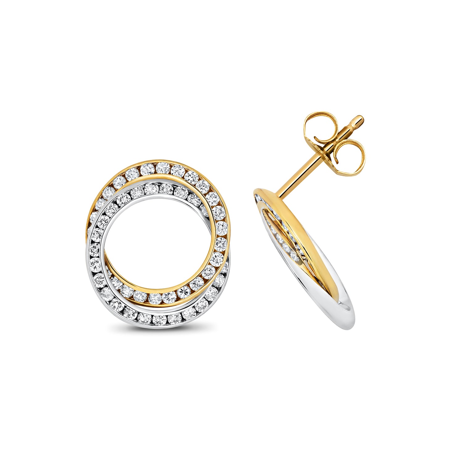 Add a touch of elegance to your look with our exquisite yellow and white Gold Diamond studs. These stunning earrings feature two discs adorned with brilliant-cut Diamonds, totaling 0.75ct, radiating with brilliance and sophistication. Each Diamond boasts an H colour and SI3 clarity, ensuring a captivating sparkle.