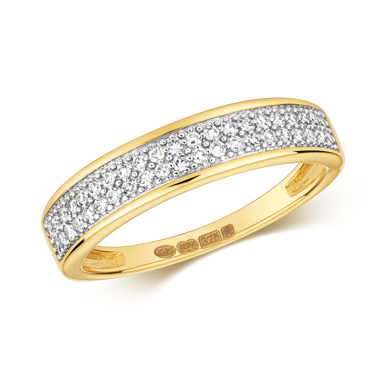 9ct Gold Diamond 2 Row Band (Available in Yellow Gold)
