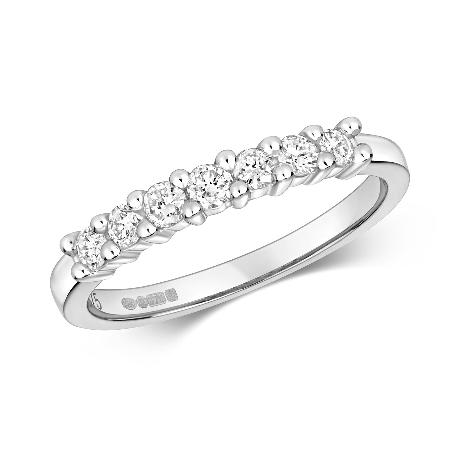 Weighing between 1.8 grams and 2.6 grams, this half eternity ring offers a comfortable fit while maintaining its exquisite appearance. The prong setting not only enhances the Diamonds' brilliance but also allows maximum light to pass through each stone, amplifying their natural sparkle. Whether worn as a symbol of a significant milestone or as a cherished everyday accessory, this half eternity ring is a testament to fine craftsmanship and timeless design, making it a perfect addition to any jewellery collection.
