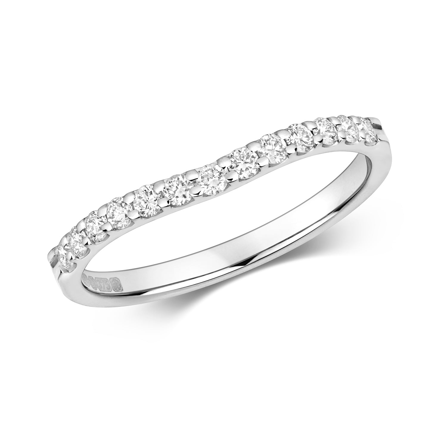 This elegant 9ct Gold Diamond set curve ring is a beautiful blend of sophistication and modern design. Featuring brilliant cut Diamonds, each carefully channel set, the ring showcases a graceful curve that adds a touch of refinement. The Diamonds, with an H colour grade, provide a bright and dazzling sparkle that enhances the elegant design. Available in two different carat weight options, the ring can be adorned with either 18 stones totaling 0.17ct or 13 slightly larger Diamonds totaling 0.25ct, allowing for a choice in the level of brilliance and presence.