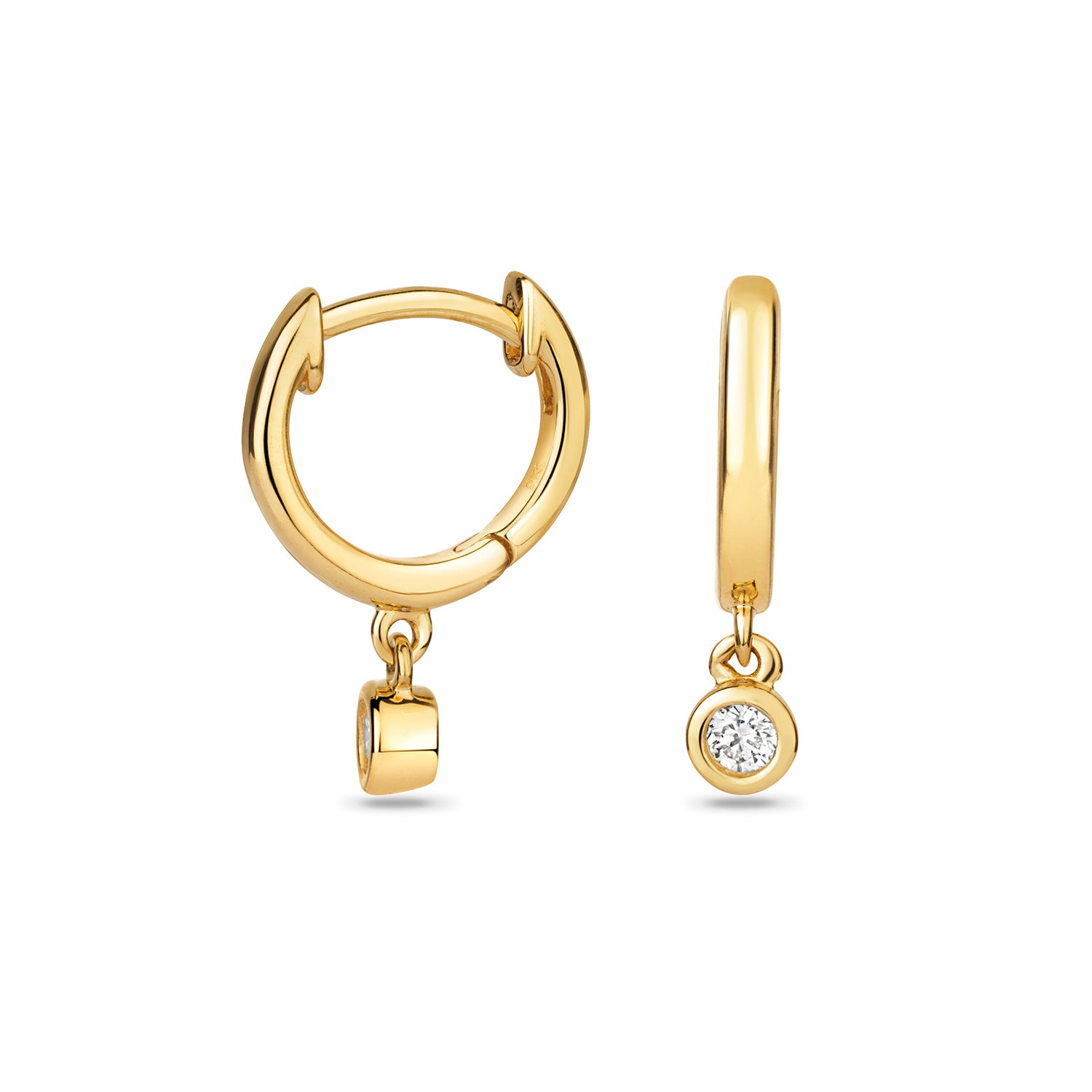 Introducing our elegant pair of huggie earrings, crafted in radiant 9ct Gold for timeless style. These huggies feature a single brilliant-cut Diamond gracefully hanging from each, adding a touch of sophistication to your look.
