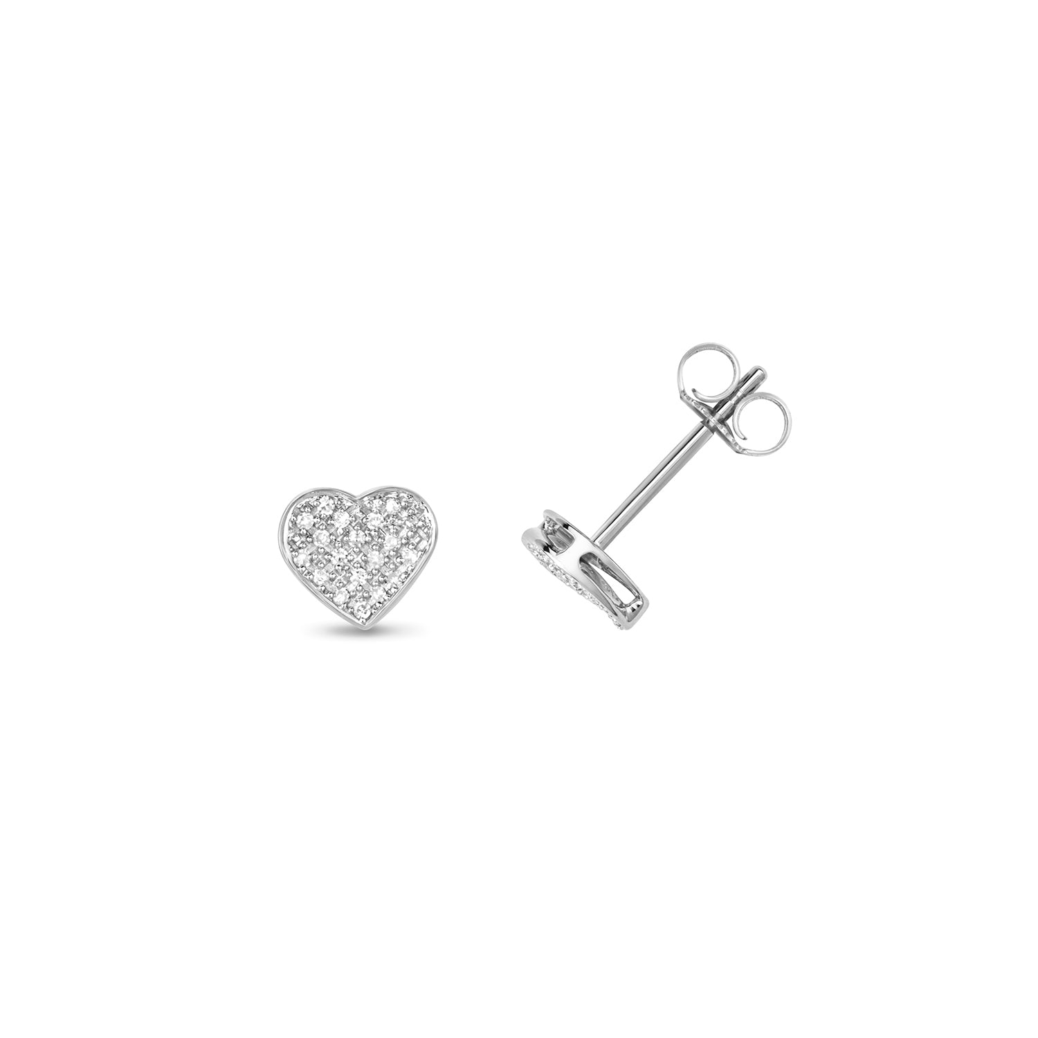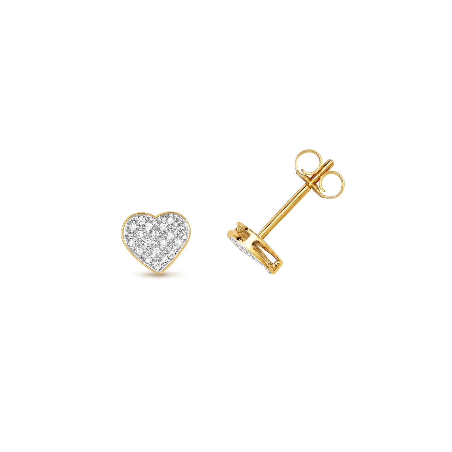 Introducing our charming pair of 9ct Gold Diamond set heart stud earrings, designed to steal your heart with their beauty. Each earring features a cluster of 38 brilliant-cut Diamonds, totaling 0.10ct, set in a delightful heart shape. Weighing 1 gram, these earrings are lightweight and comfortable for all-day wear. Secured with heart scroll butterfly closures for added elegance and security. Add a touch of sparkle and love to any outfit with these timeless heart stud earrings.