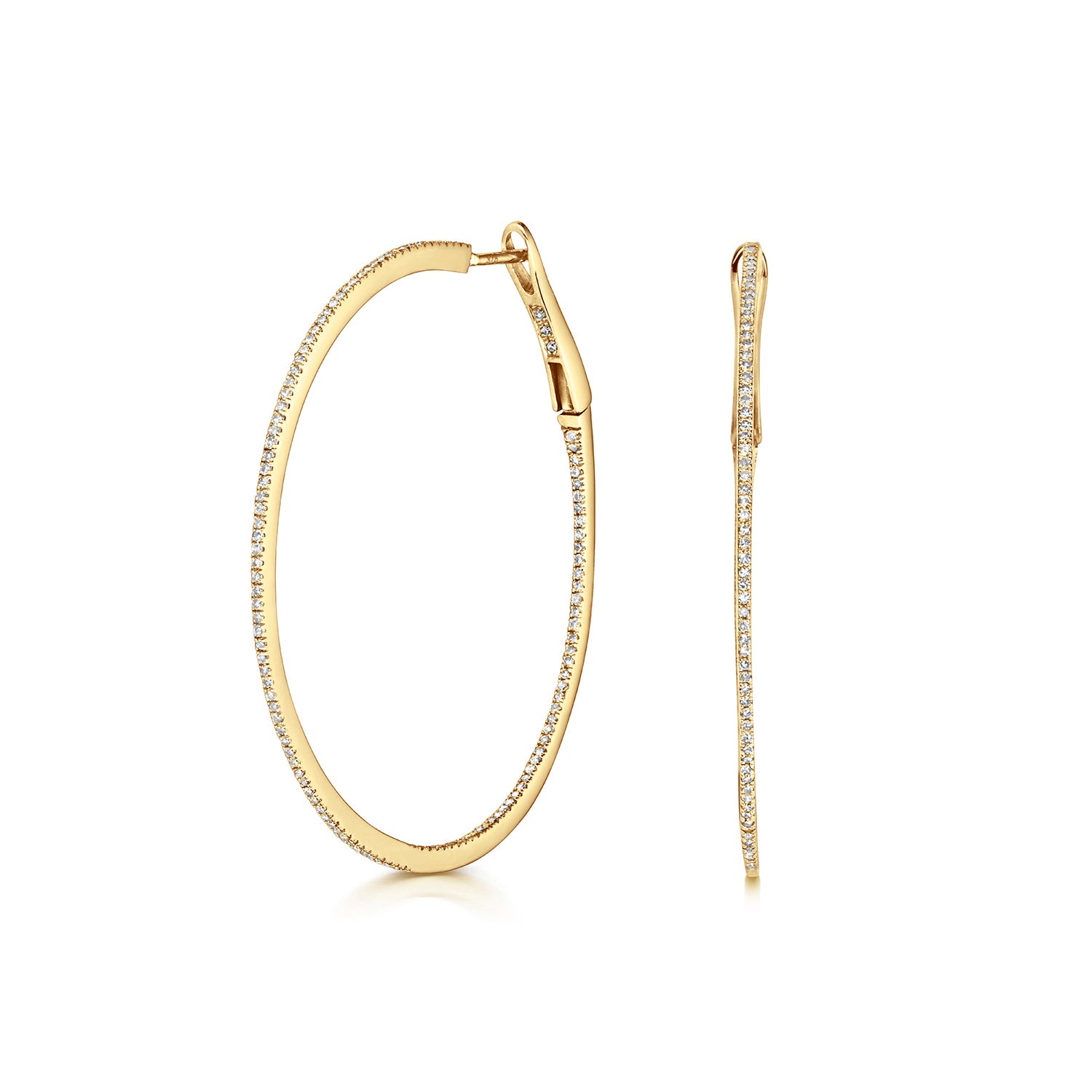 Available in sizes ranging from 34mm to 53mm, these versatile hoops cater to various style preferences, from subtle sophistication to bold glamour. The total carat weight of the stones varies from 0.50ct to 0.87ct, providing a dazzling display that complements the luxurious Gold setting.