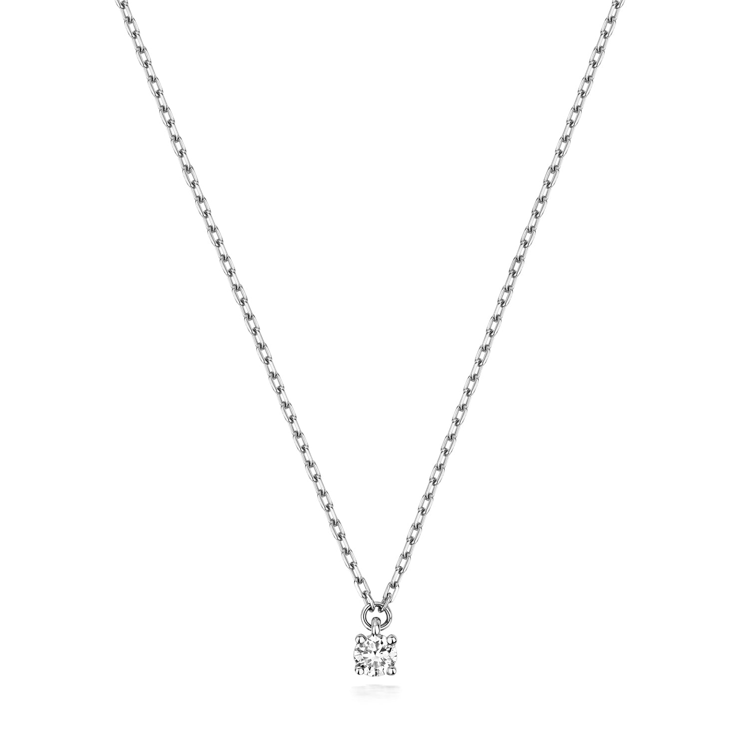 Introducing the timeless elegance of the 9ct Gold necklace featuring a single brilliant cut Diamond, a symbol of refined sophistication. This exquisite pendant showcases a sparkling Diamond, meticulously held in place by a secure 4-claw prong setting. Available in sizes ranging from 0.05ct to 0.14ct and graded H colour, the Diamond radiates a captivating brilliance and charm, making it a versatile and cherished piece of jewellery.