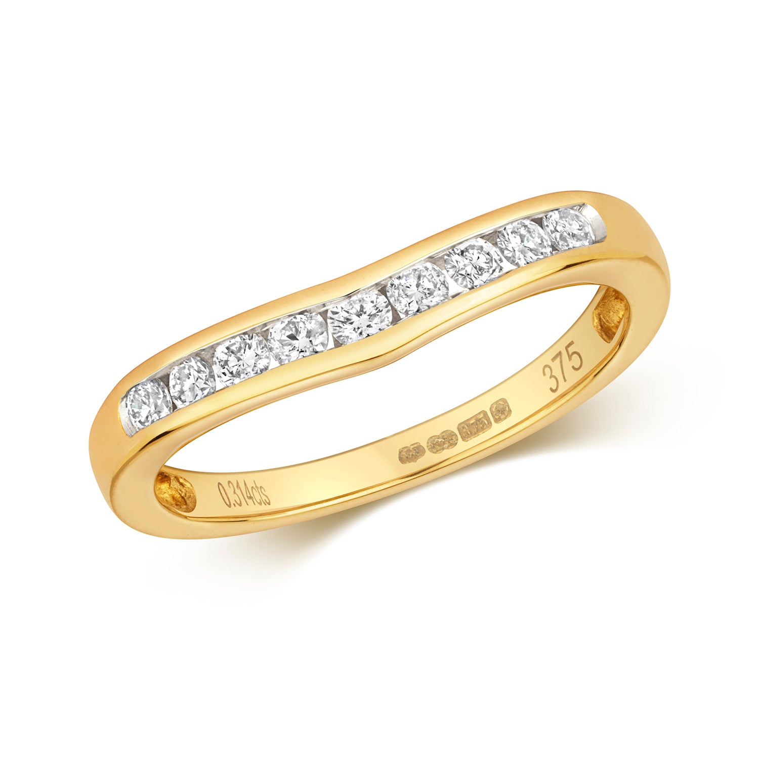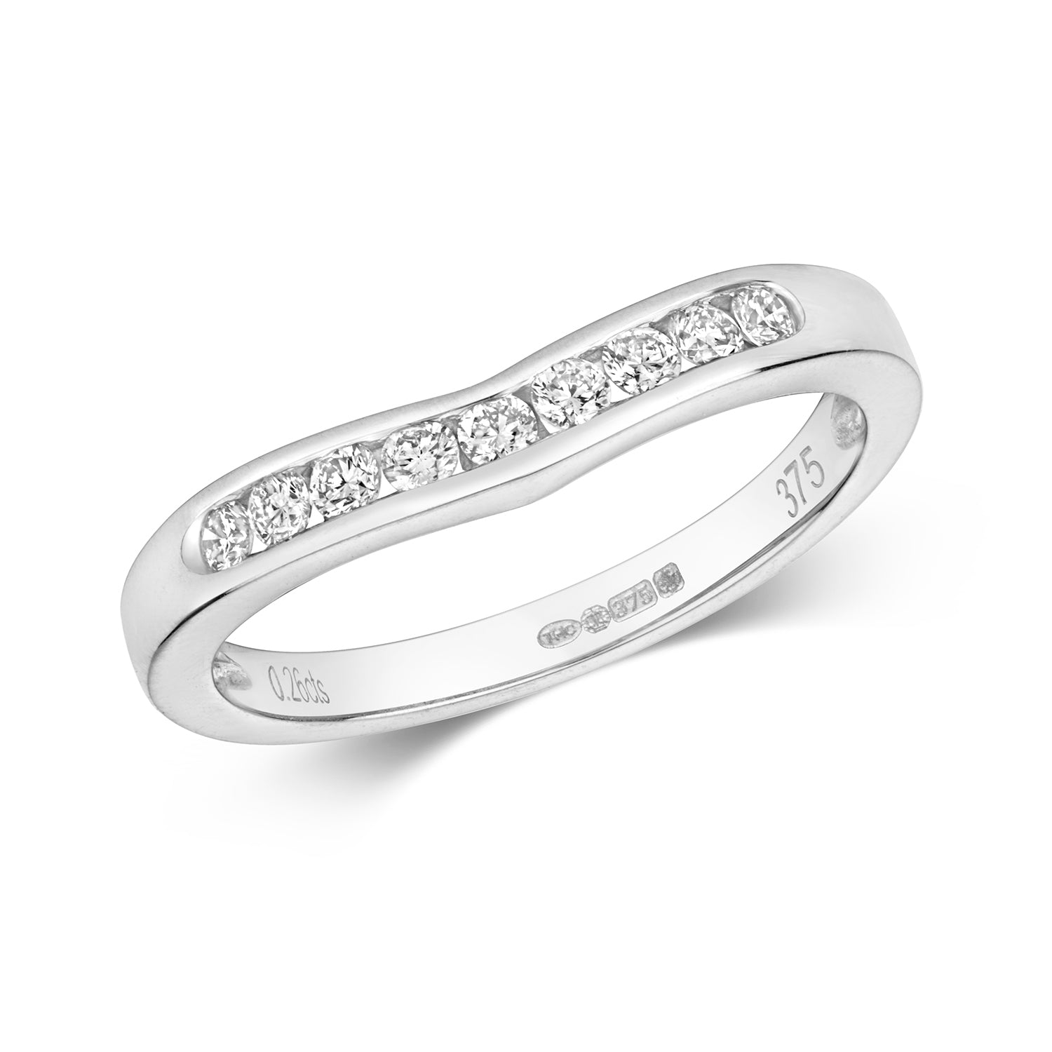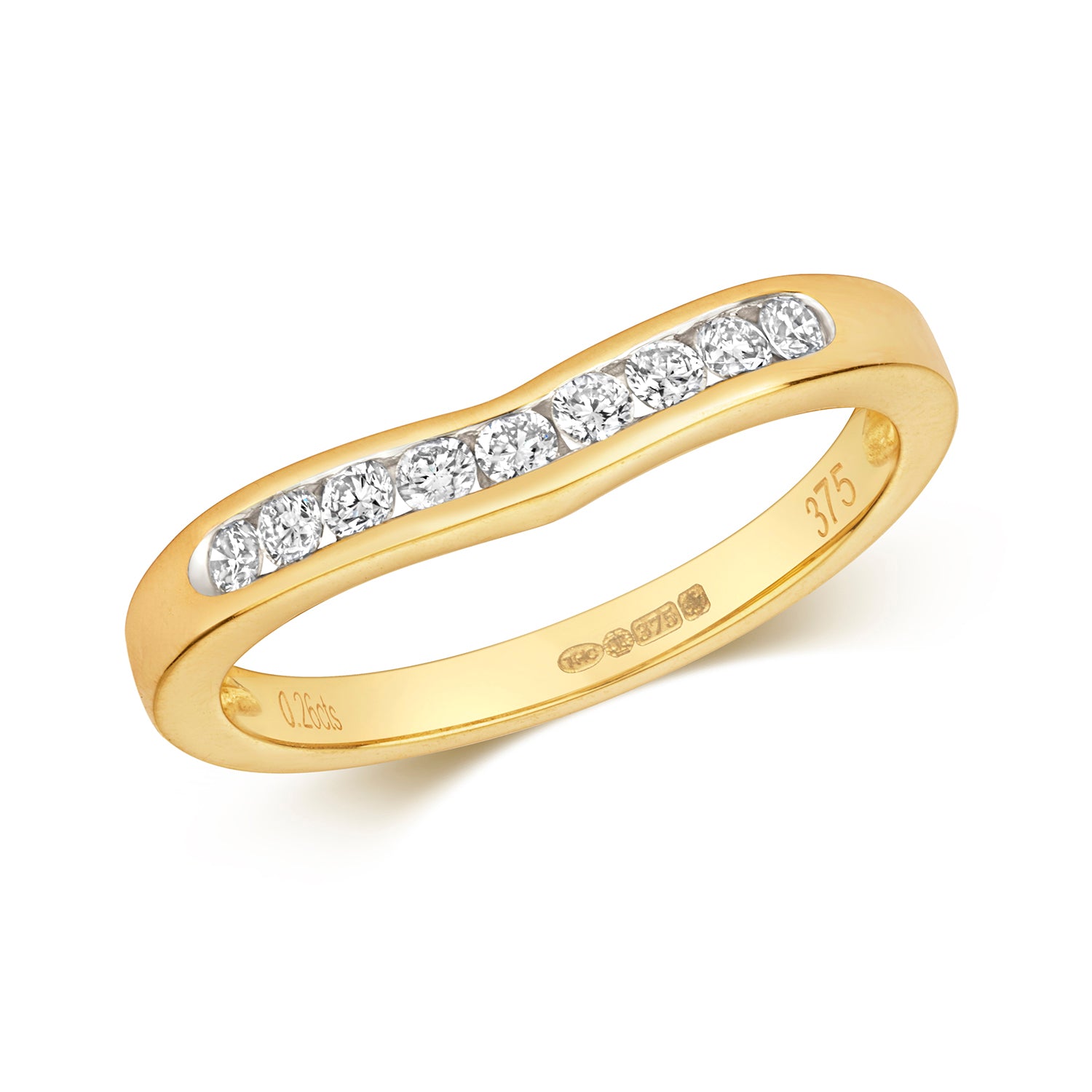 This elegant 9ct Gold Diamond set wishbone ring combines contemporary design with timeless charm. The ring features nine brilliant-cut Diamonds, each meticulously channel set along the distinctive wishbone curve. With a total carat weight ranging from 0.25ct to 0.33ct, these Diamonds radiate exceptional sparkle and brilliance. The unique wishbone design not only adds a touch of sophistication but also symbolises good luck and positive energy, making it a meaningful piece that stands out in any jewellery collection.