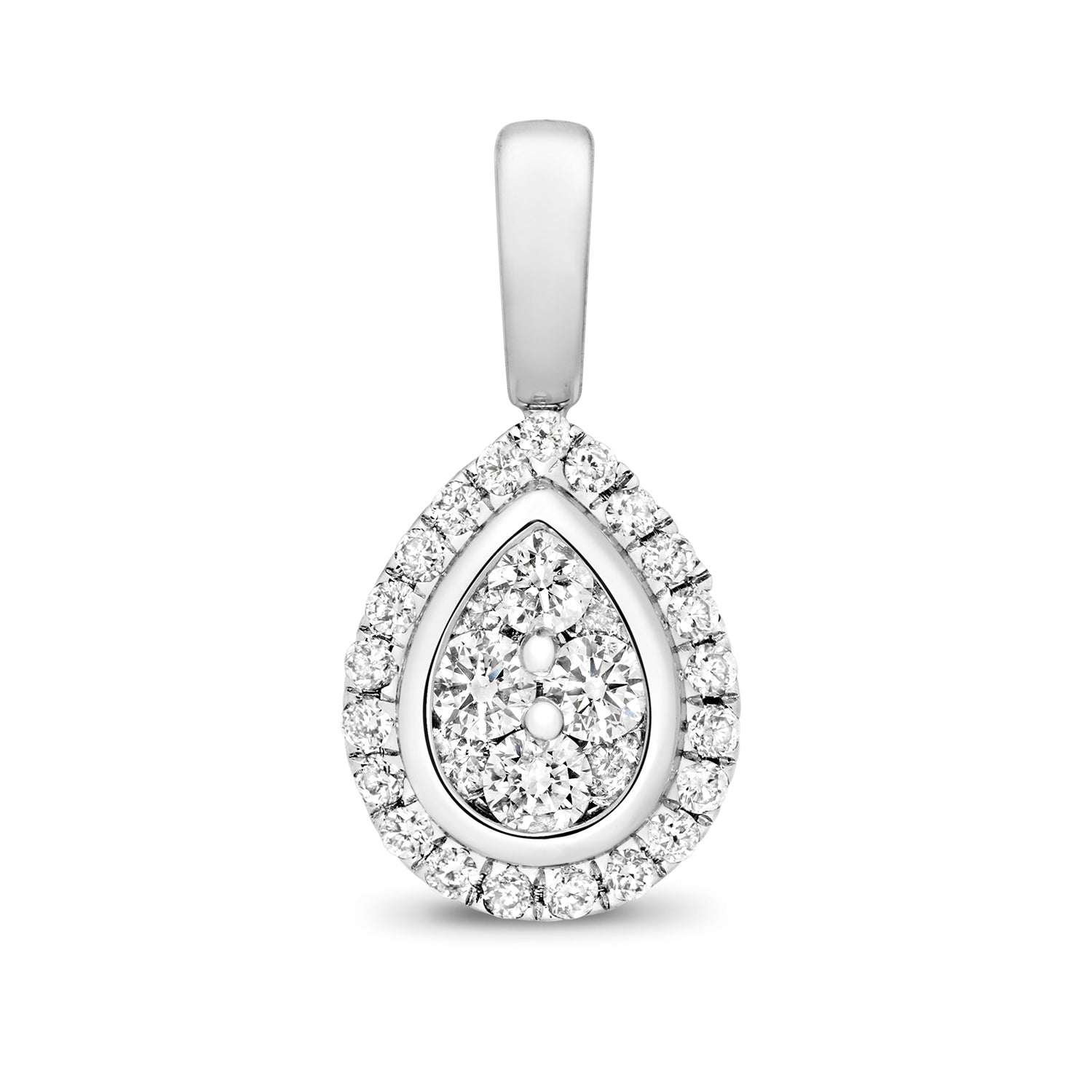 Elevate your style with the sophisticated allure of this 9ct white Gold Diamond cluster pendant, elegantly crafted in a timeless pear shape. This exquisite piece features approximately 29 brilliant cut Diamonds, each boasting an H colour and I1 clarity, offering a stunning sparkle that radiates beauty and refinement.
