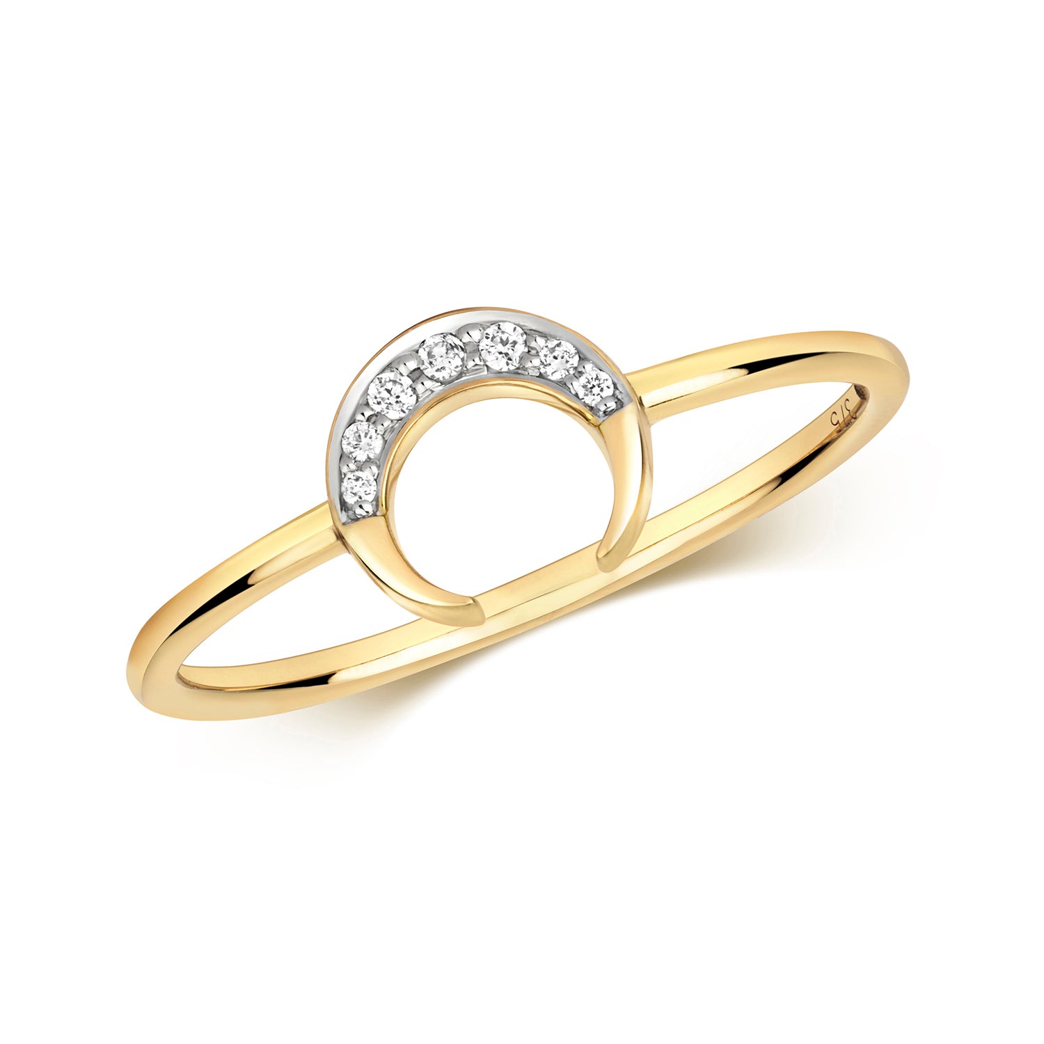 9ct Yellow Gold Diamond Crescent Moon Ring