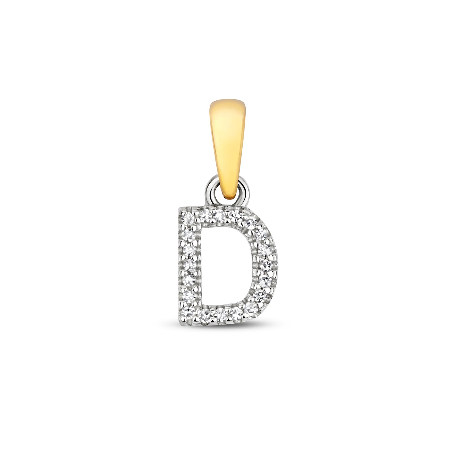 Discover the epitome of elegance and personalisation with our 9ct yellow Gold initial pendant, adorned with brilliant cut Diamonds. Each pendant showcases a beautifully crafted letter, set in gleaming white gold and encrusted with a cluster of dazzling Diamonds of H colour, with a total carat weight of 0.02ct. The letter is perfectly complemented by a yellow Gold bail, creating a stunning contrast that highlights the intricate design.