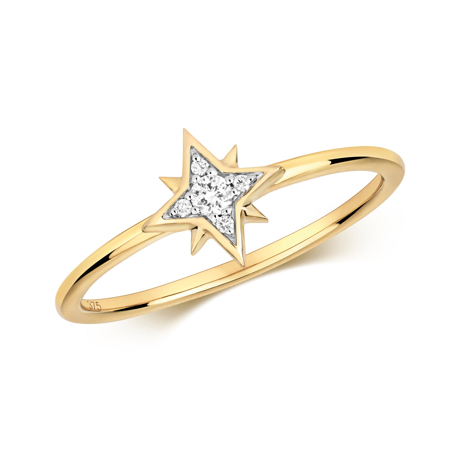 Weighing 1.1 grams, this Northern star ring is both lightweight and comfortable, ideal for daily wear or as a special accessory for memorable occasions. The warm, rich tone of the 9ct yellow Gold perfectly complements the radiant Diamonds, creating a piece that is both timeless and contemporary. Whether given as a meaningful gift or worn as a personal statement, this ring embodies a harmonious blend of beauty and craftsmanship, destined to be treasured for years to come.