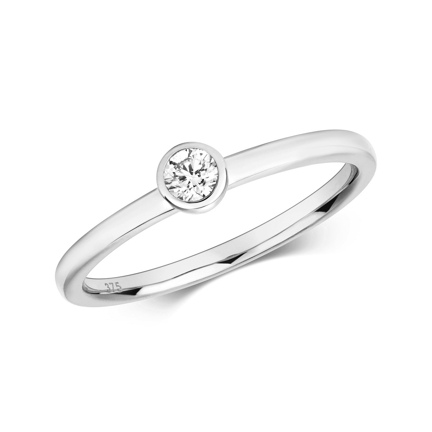 This elegant 9ct Gold Diamond solitaire ring is the epitome of timeless sophistication. The ring features a stunning brilliant-cut Diamond, meticulously set in a bezel setting that securely holds the stone while showcasing its full beauty. With a carat weight of 0.10ct and an H colour grade, the Diamond exudes a captivating sparkle and brilliance, making it a striking centrepiece. The bezel setting not only enhances the stones luminosity but also provides a sleek and modern aesthetic.