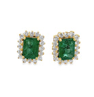 18ct Gold Fine Emerald and Diamond Stud Earrings