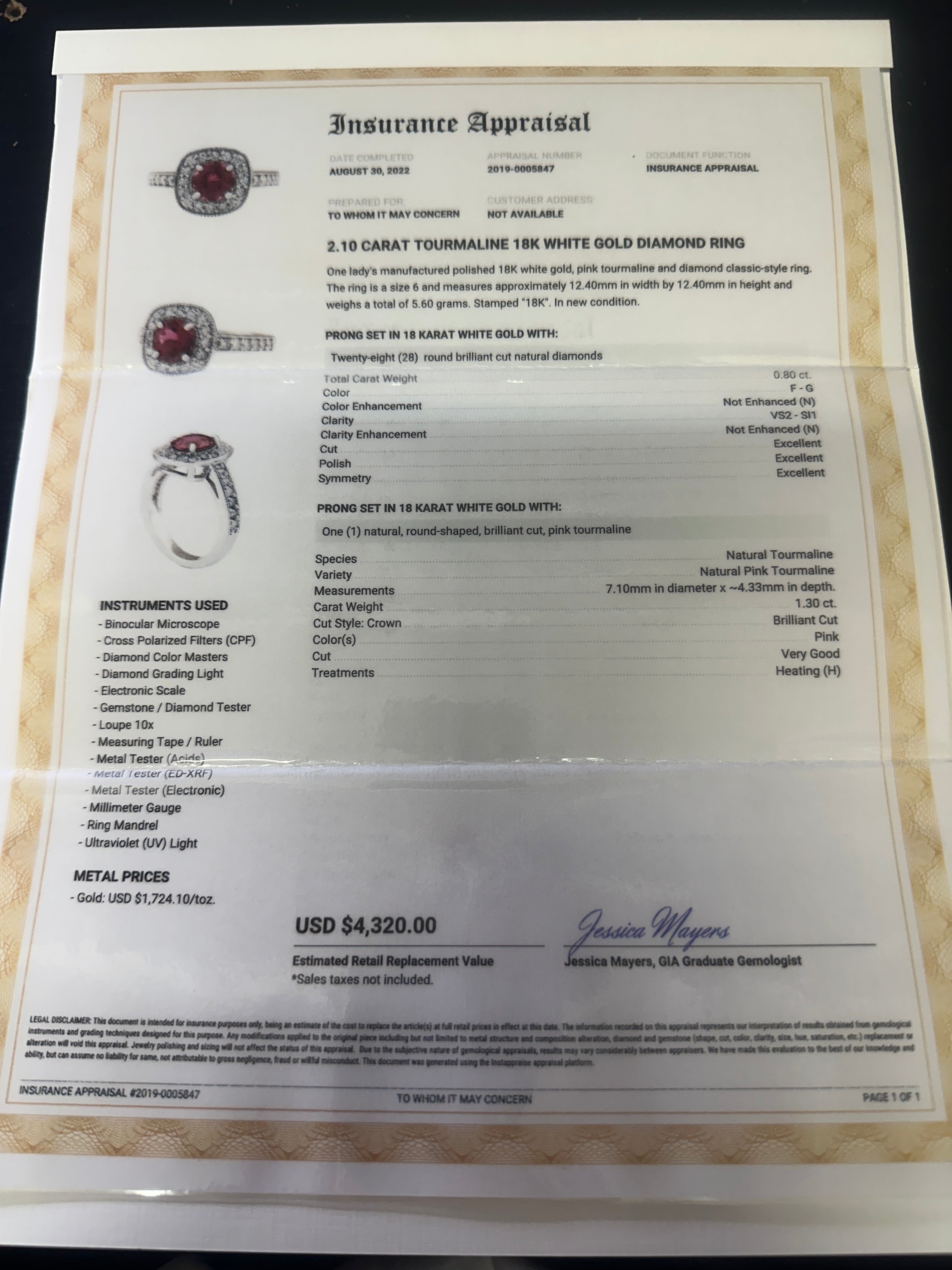 18ct White Gold Pink Tourmaline & Diamond Ring