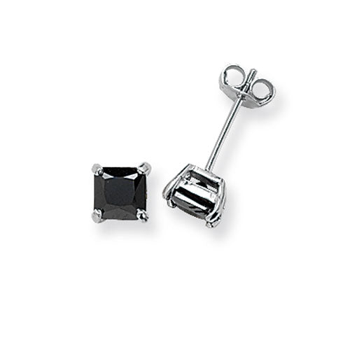 Sterling Silver Square Cubiic Zirconia Claw Set Studs (Various Sizes Available)