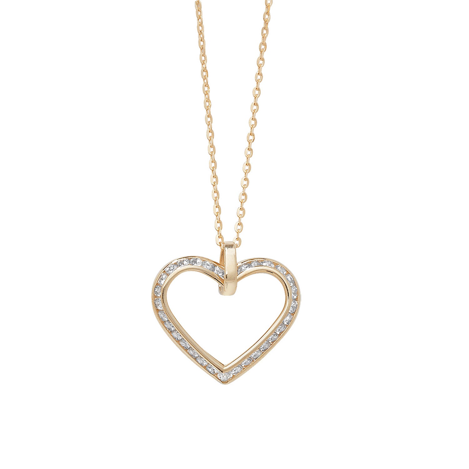 9ct Yellow Gold Channel Set Cubic Zirconia Heart Necklet