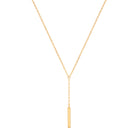 - Fine chain with a central drop and elongated bar pendant for a contemporary look