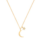 9ct Yellow Gold Half Moon and Cubic Zirconia Star Necklet(Chain Included 16"-18")