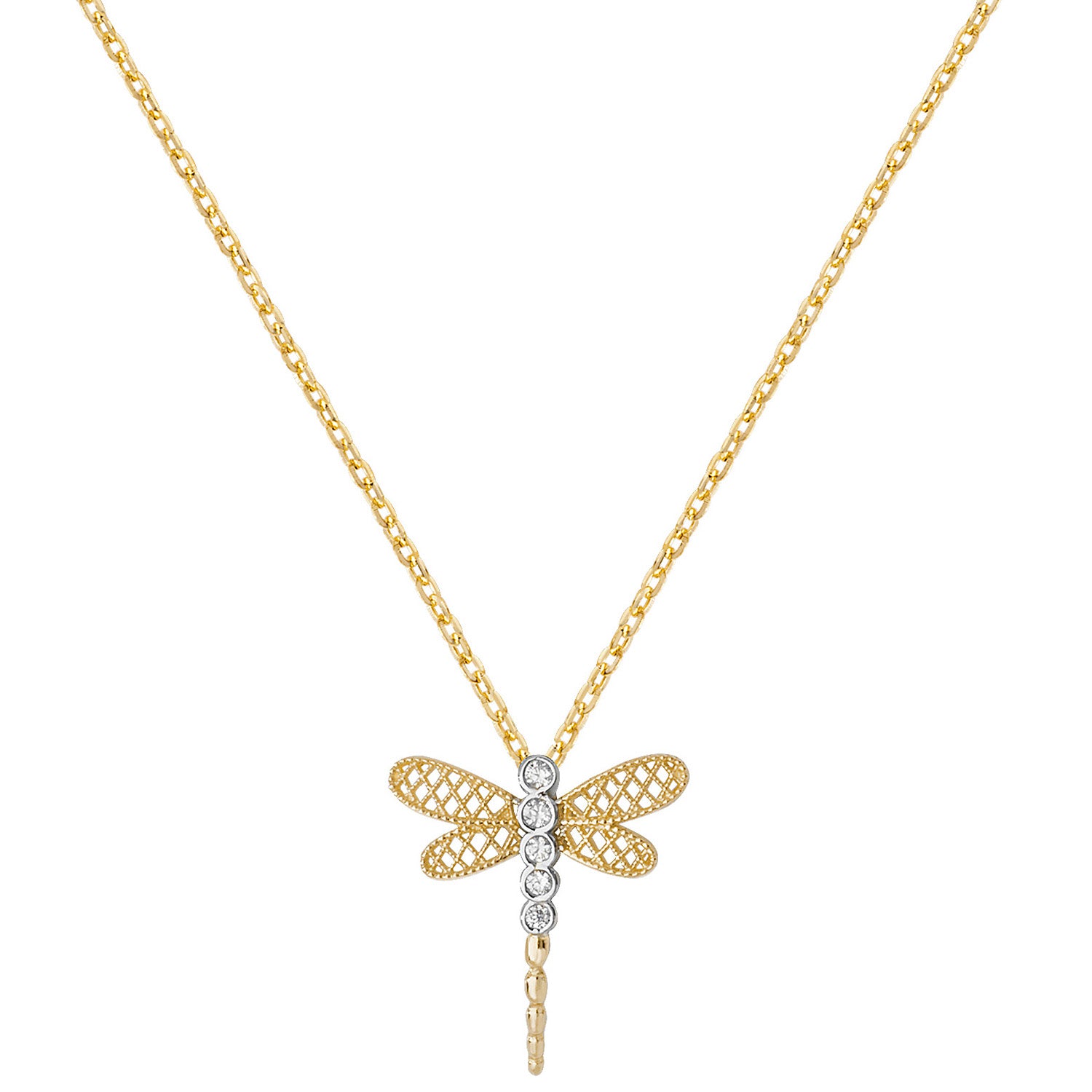 This dragonfly pendant is not just a symbol of grace and transformation, but also a sophisticated accessory that combines the brilliance of cubic zirconias with the timeless appeal of yellow and white gold. Perfect for both everyday wear and special occasions, this pendant brings a subtle yet striking elegance to any outfit.