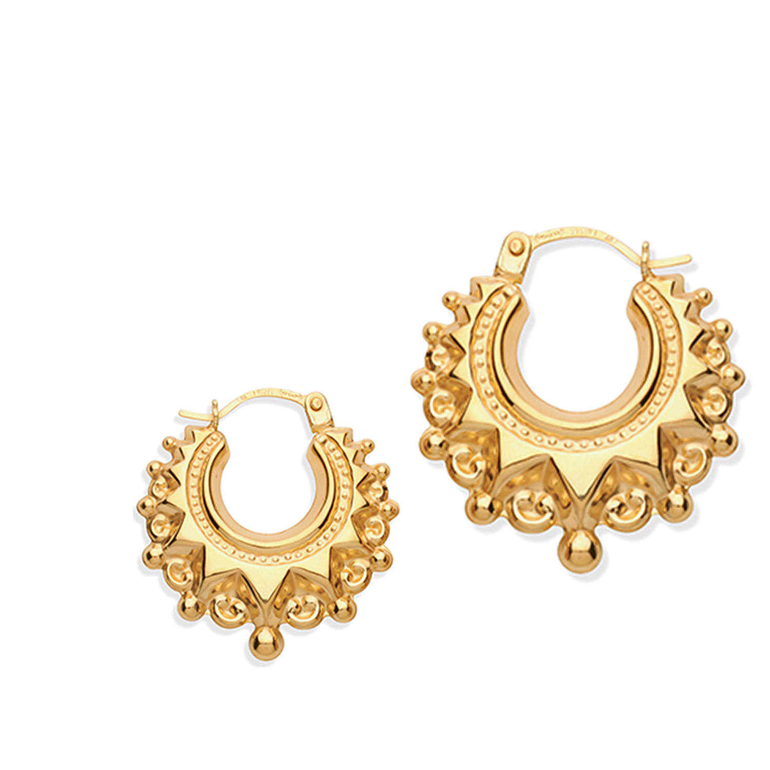 Crafted from high-quality 9ct yellow gold, these earrings are designed for everyday wear with a lightweight feel and secure fastening for comfort and durability. Whether worn for a special occasion or as an everyday accessory, these creole earrings are a versatile addition to any jewellery box.