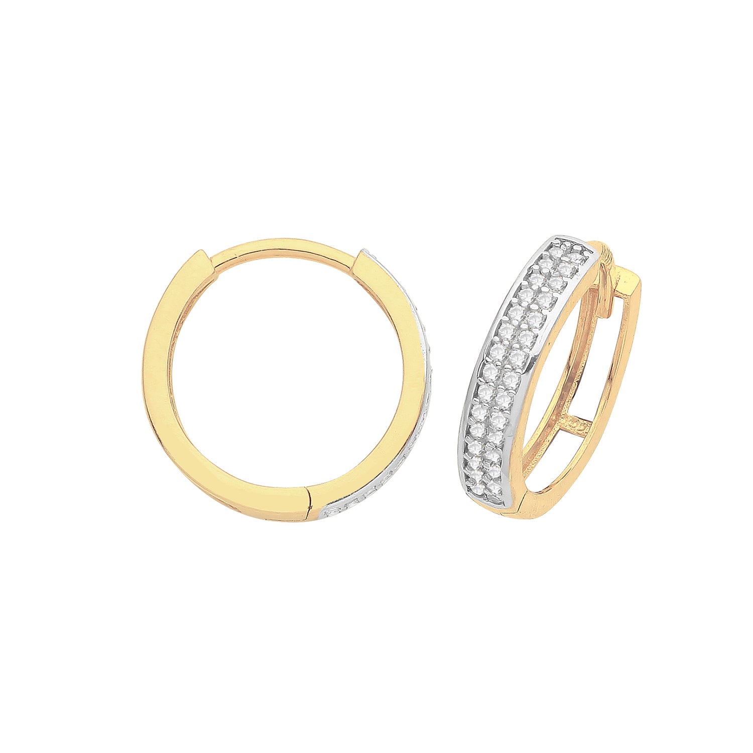 9ct Yellow Gold Double Row Cubic Zirconia Huggie Hoops – 11mm
