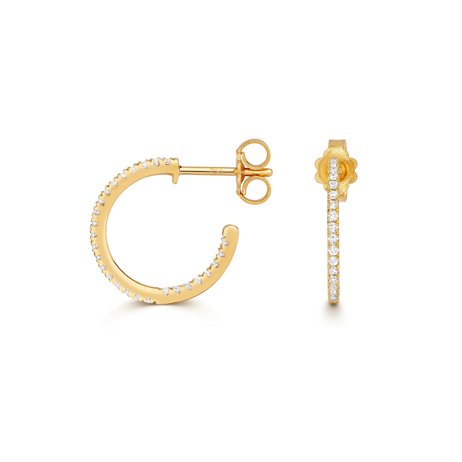 Introducing our elegant 18ct Gold Diamond open stud hoops, adding a touch of glamour to your everyday look. These hoops measure 12mm in size and feature brilliant-cut Diamonds, meticulously set to sparkle at every angle. With a total carat weight of 0.24ct, these stones, boasting H colour and I1 clarity, offer a subtle yet captivating shimmer.