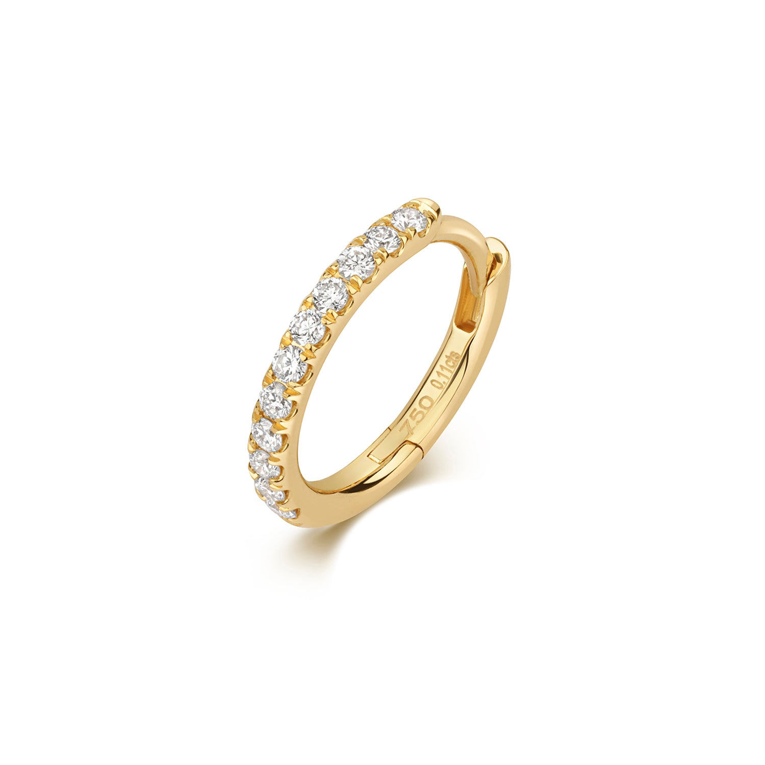 Introducing our exquisite 18ct Gold Diamond cartilage single hoop, adding a touch of sparkle to your ear stack. Each hoop is adorned with brilliant-cut Diamonds, boasting a charming H colour and SI2 clarity, offering a brilliant shimmer. The total carat weight ranges from 0.10ct to 0.11ct, ensuring a subtle yet captivating sparkle.