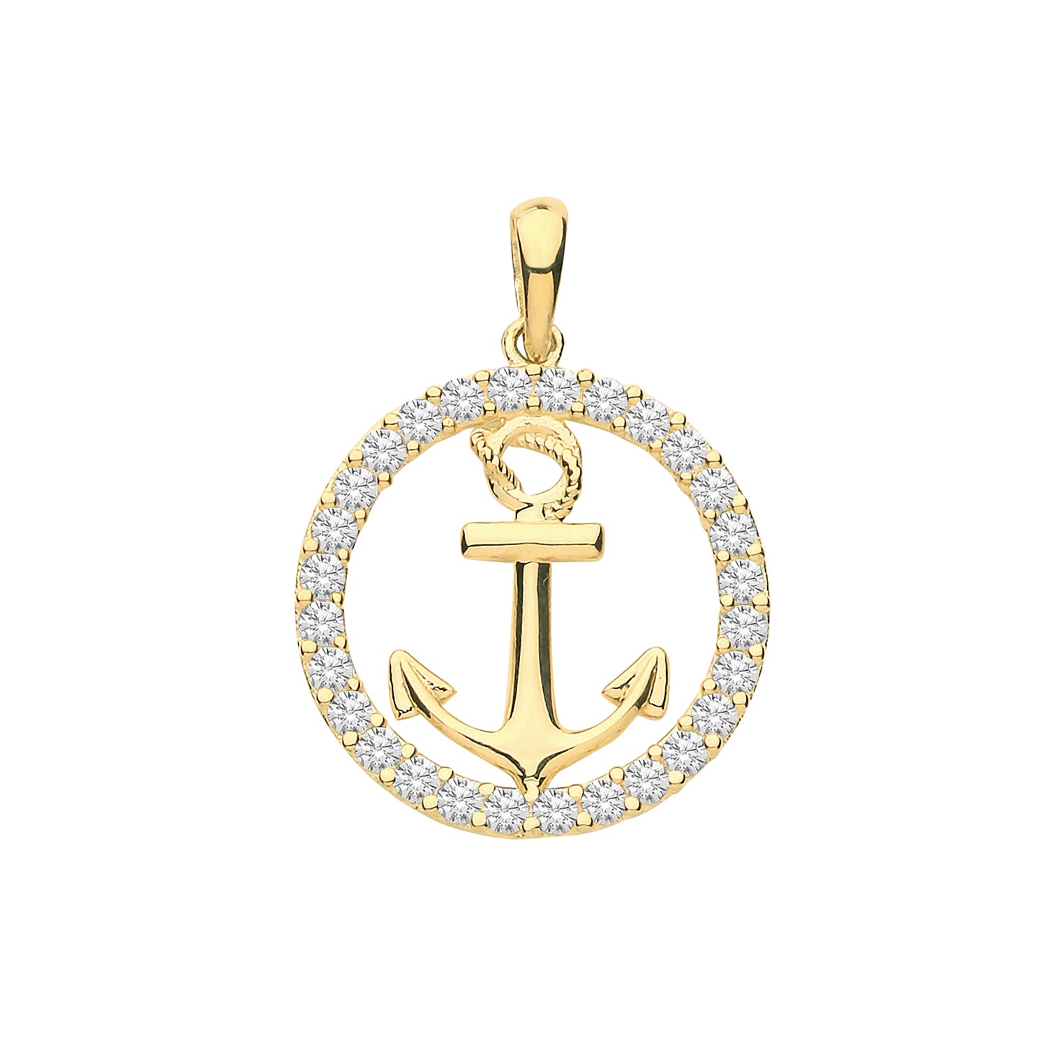 9ct Gold 14mm Anchor Pendant With Sparkling CZ Halo (Optional Chain)