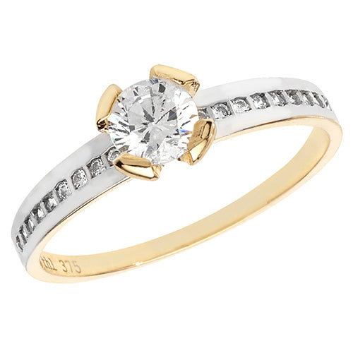 9ct Two Tone Fancy Claw Rub Over Set Cubic Zirconia Dress Ring