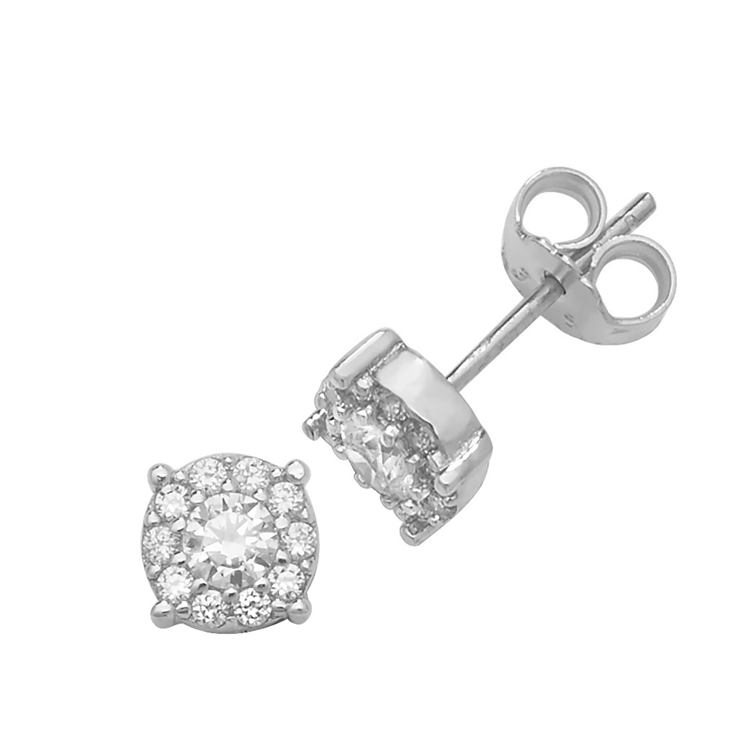 9ct White Gold Pavé Claw Set Cubic Zirconia Stud Earrings