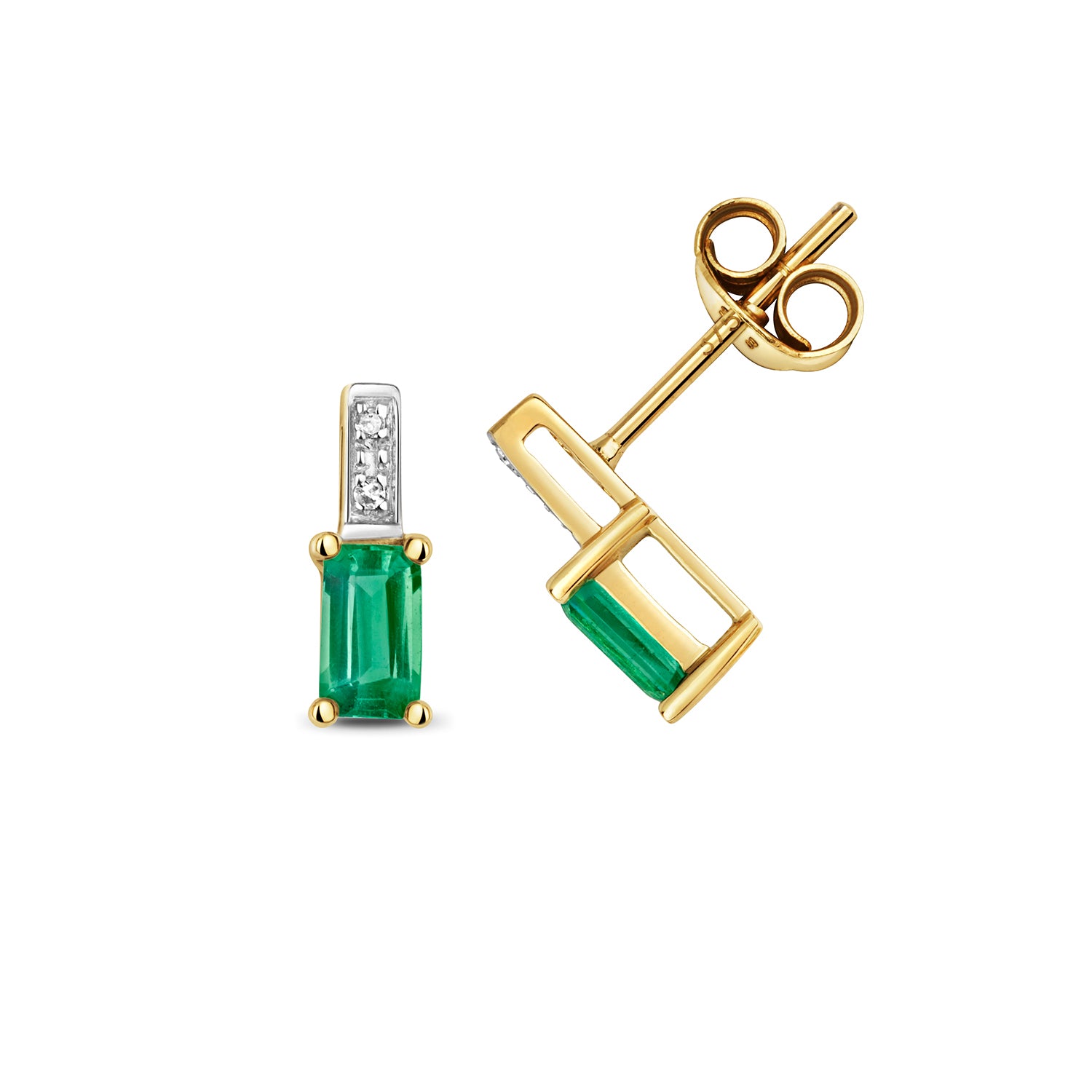 9ct Yellow Gold Diamond & Emerald Stud Earrings