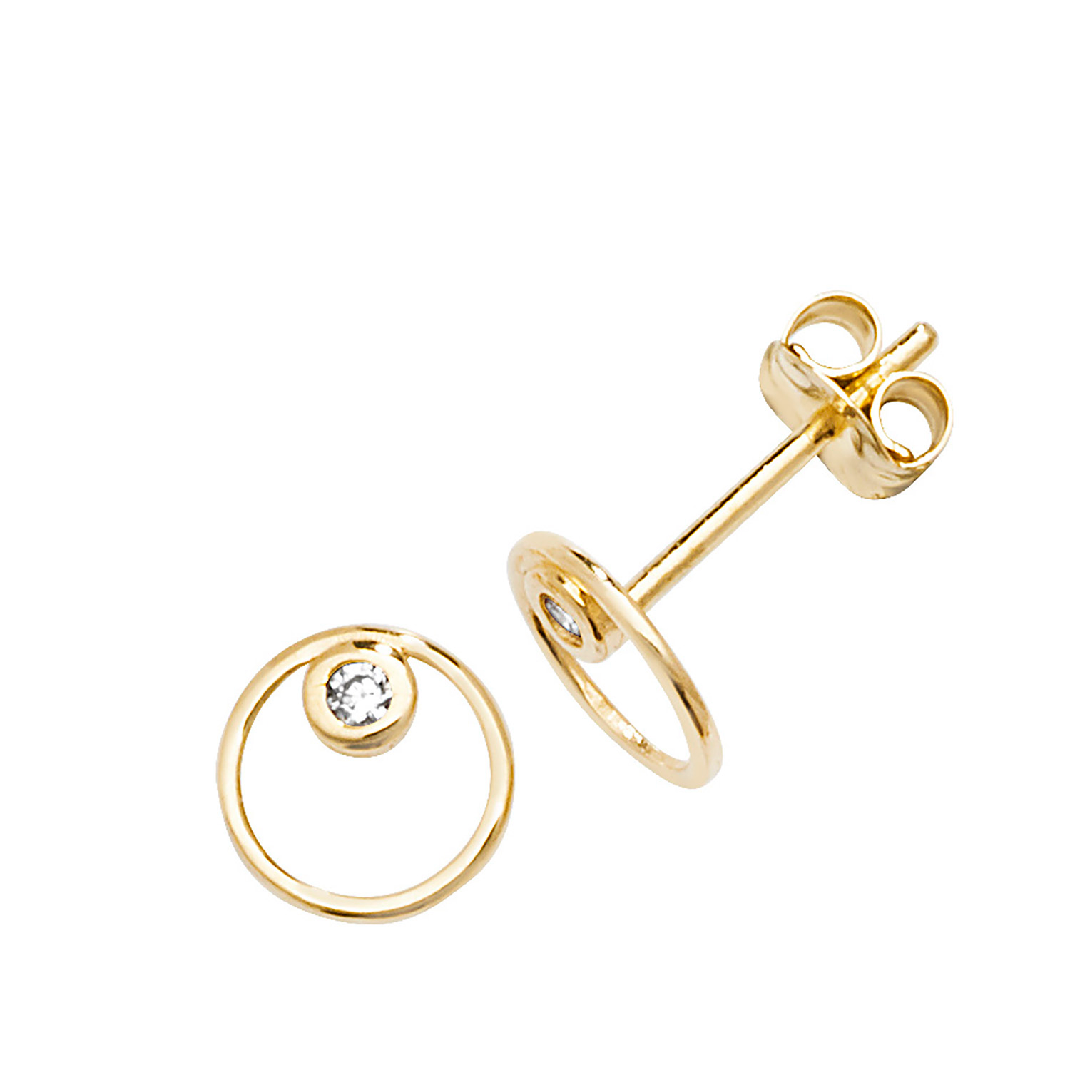 9ct Yellow Gold Thin Double Circle Cubic Zirconia Stud Earrings