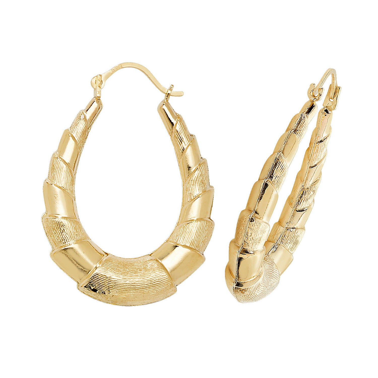 These 9ct Yellow Gold Graduated Oval Hoops are a stylish twist on classic hoop earrings. Expertly crafted from luxurious 9ct yellow gold, these earrings feature a unique ribbed texture and a graduated design that adds depth and dimension. The oval shape and polished finish enhance their sophisticated appeal, making them perfect for everyday wear or special occasions. Lightweight and comfortable, these gold hoops offer a modern yet timeless look, ideal for elevating any outfit.