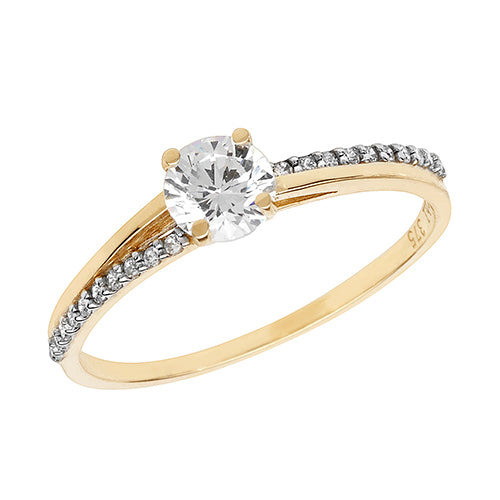 9ct Yellow Gold Half Raised Cubic Zirconia Dress Ring