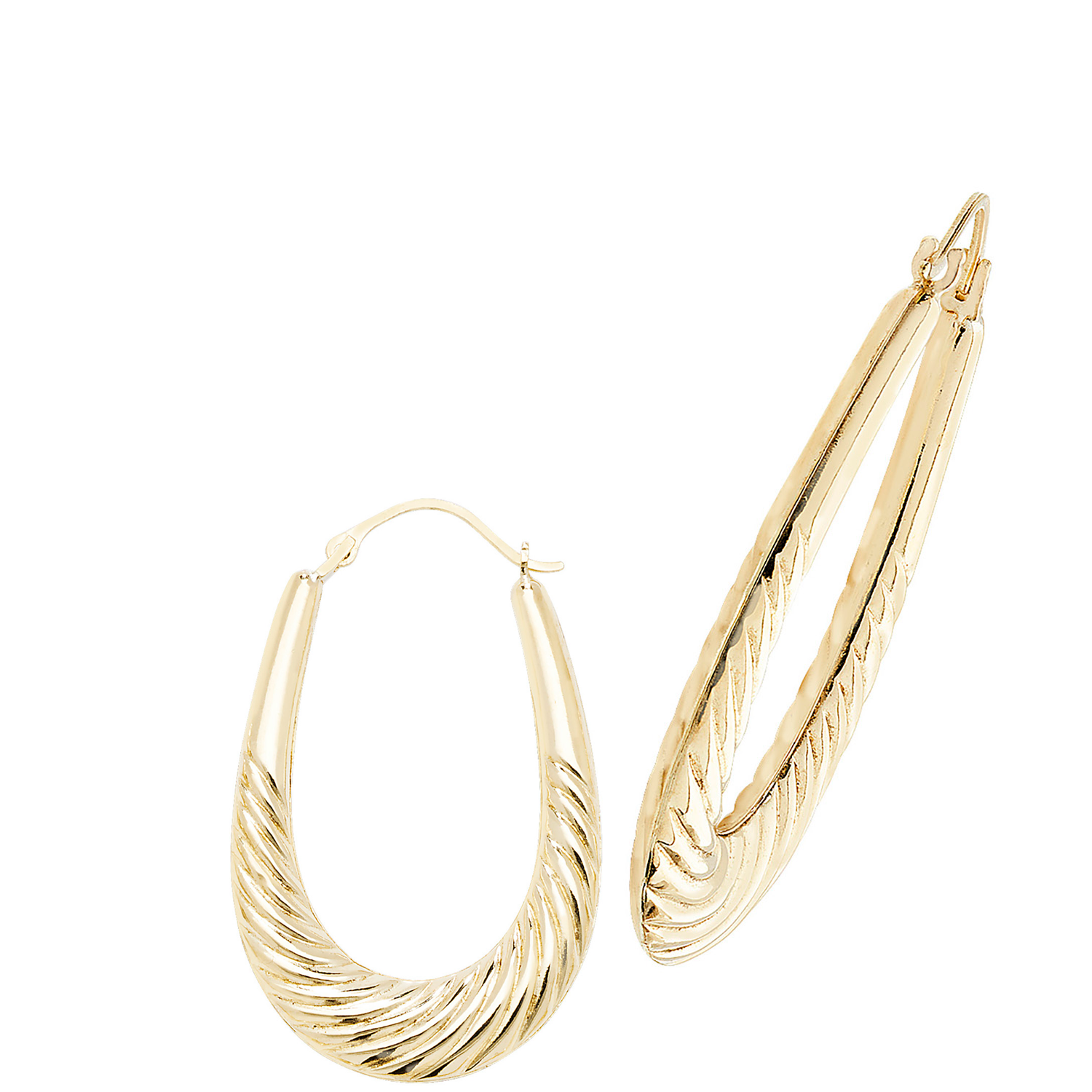 Make a bold statement with these 9ct yellow gold large half twist earrings. Crafted from high-quality 9ct yellow gold, these earrings feature a striking half-twist design that adds texture and elegance to their polished gold finish. The large size makes them perfect for those who love a standout accessory, ideal for dressing up everyday outfits or adding a touch of glamour to special occasions. Lightweight and comfortable, these earrings combine timeless style with a modern twist.