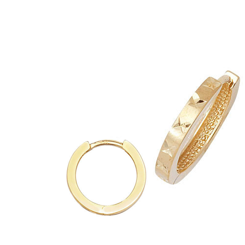 9ct Yellow Gold Hinged Diamond Cut Kiss Hoops 15mm