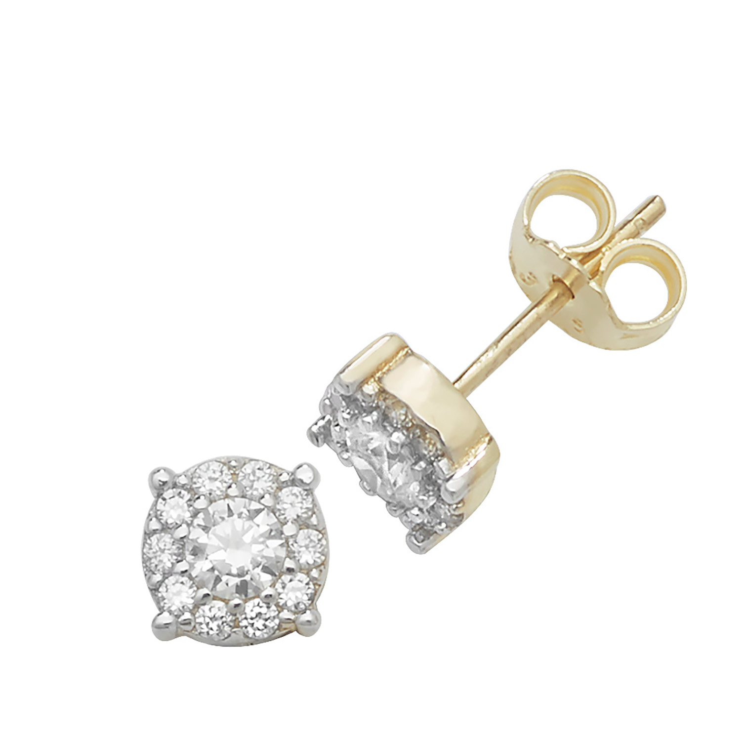 9ct Yellow Gold Pavé Claw Set Cubic Zirconia Stud Earrings