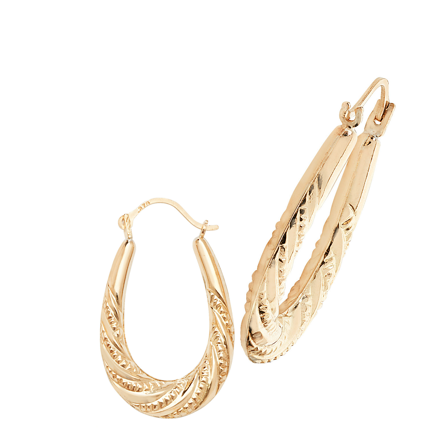 9ct Yellow Gold Twist Milgrain Oval Hoops (15mm)