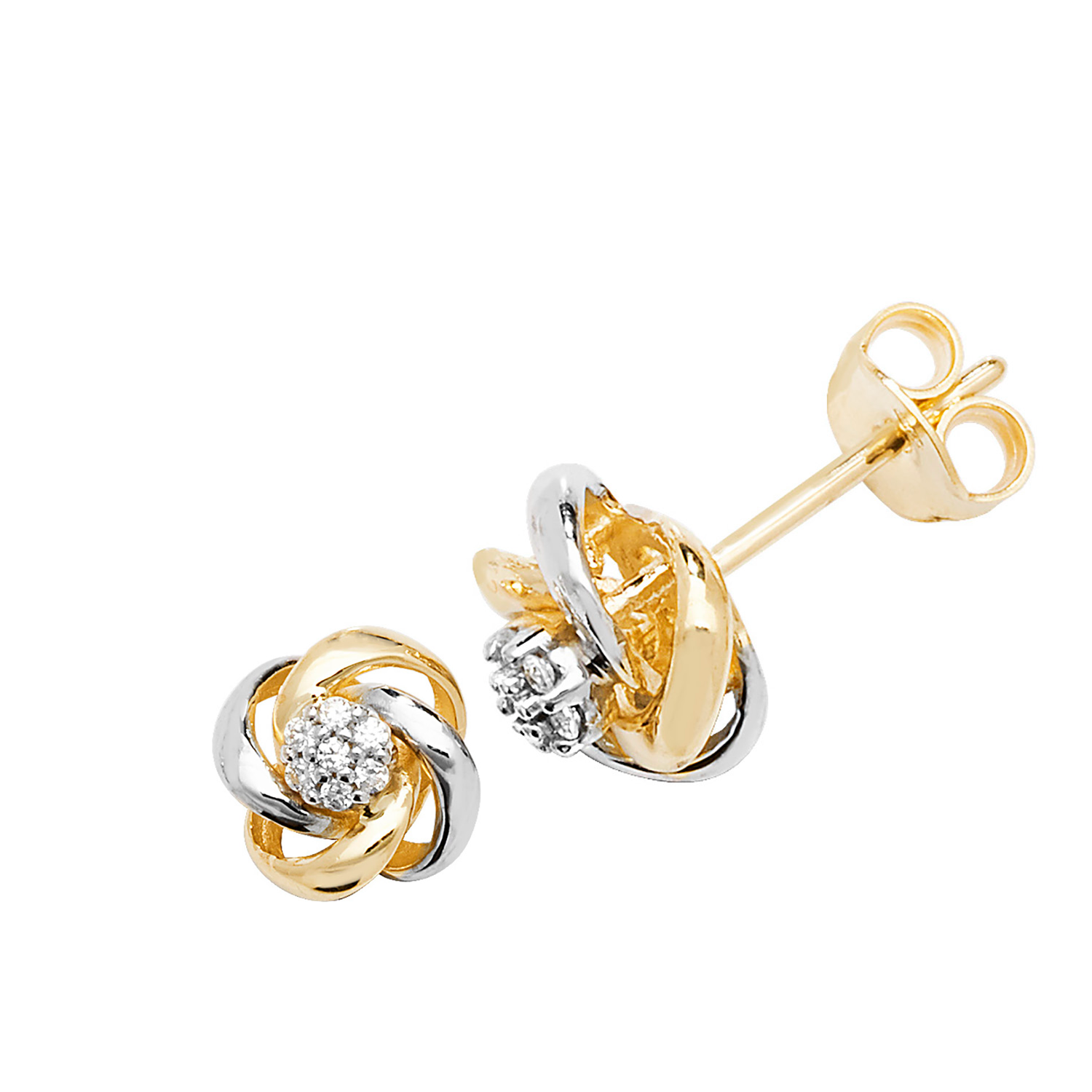 9ct Yellow & White Gold Cubic Zirconia Medium knot Stud Earrings