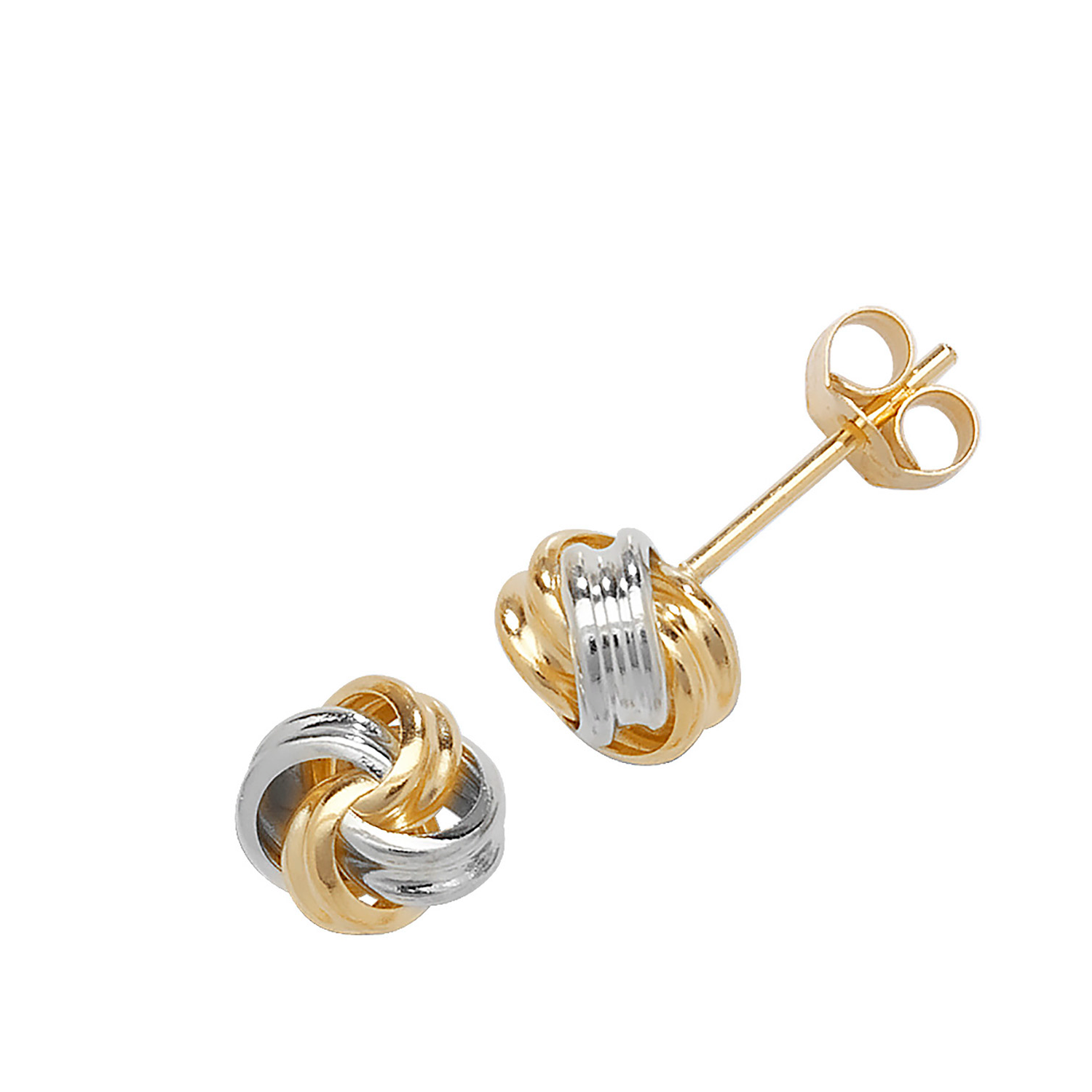 9ct Yellow & White Gold Knot Small Stud Earrings