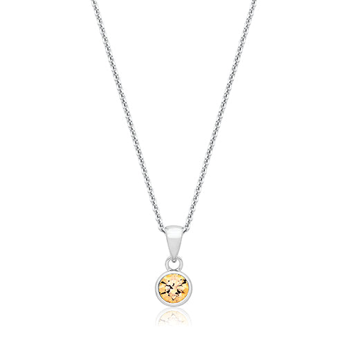 this radiant Cubic Zirconia Pendant, inspired by the warm golden hues of citrine. Featuring a vibrant citrine-yellow cubic zirconia gemstone in a secure rub-over setting, this pendant exudes timeless charm and sophistication. Suspended from a sleek V-loop and paired with a fine rhodium-plated silver chain, this piece is the perfect blend of elegance and versatility. A thoughtful gift or a stunning addition to your jewellery collection, this pendant symbolises joy, abundance, and positivity, reflecting the energy of.