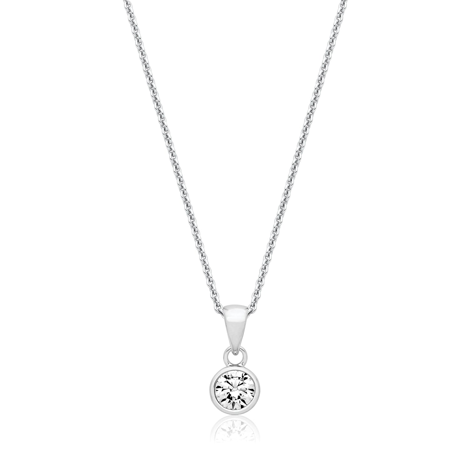 Cubic Zirconia Pendant, designed to radiate elegance and charm. Featuring a brilliant, diamond-like colourless cubic zirconia gemstone in a secure rub-over setting, this pendant sparkles with timeless beauty. The gemstone is gracefully suspended from a V-loop and hangs from a fine rhodium-plated silver chain, creating a sophisticated and versatile piece. Perfect as a thoughtful gift or a personal keepsake, this pendant symbolises purity and strength, making it an ideal addition to any jewellery collection.