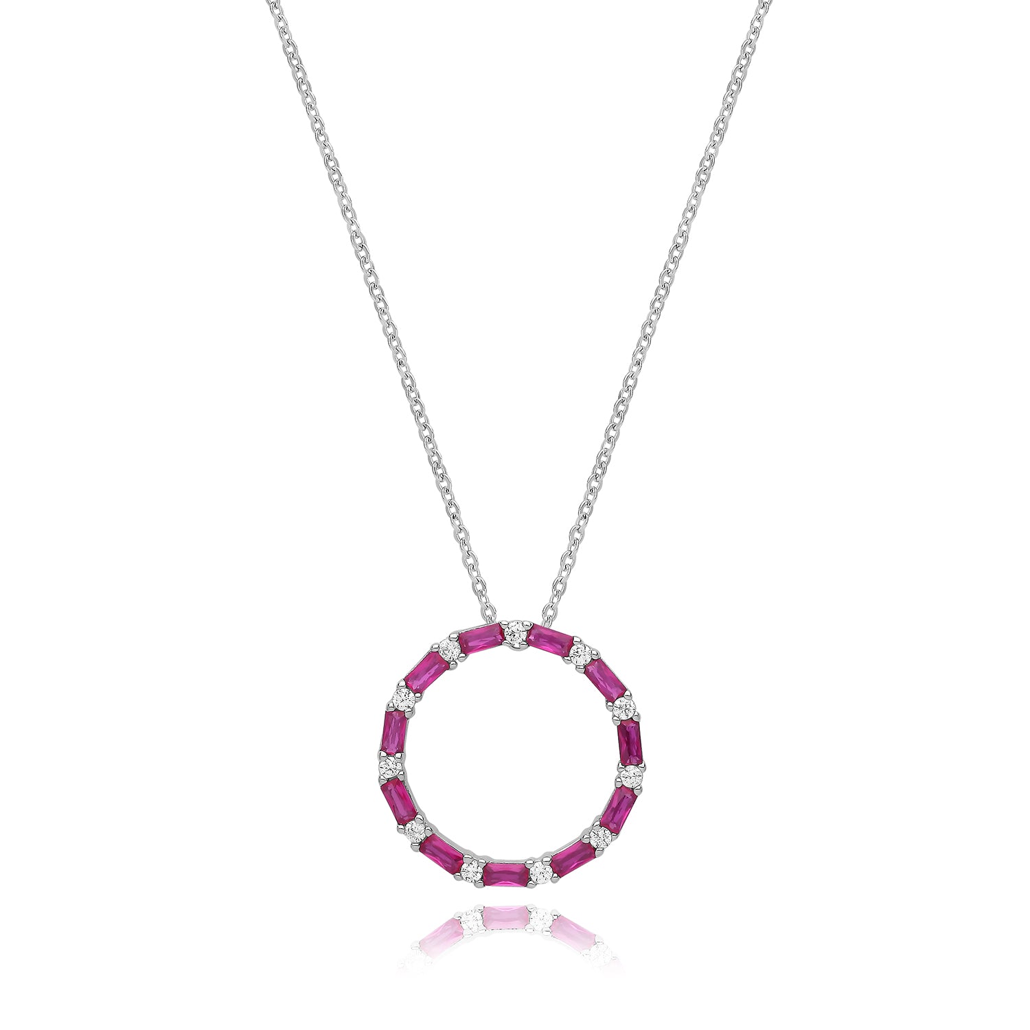 - Circle pendant with alternating red baguette-cut and white brilliant-cut cubic zirconias